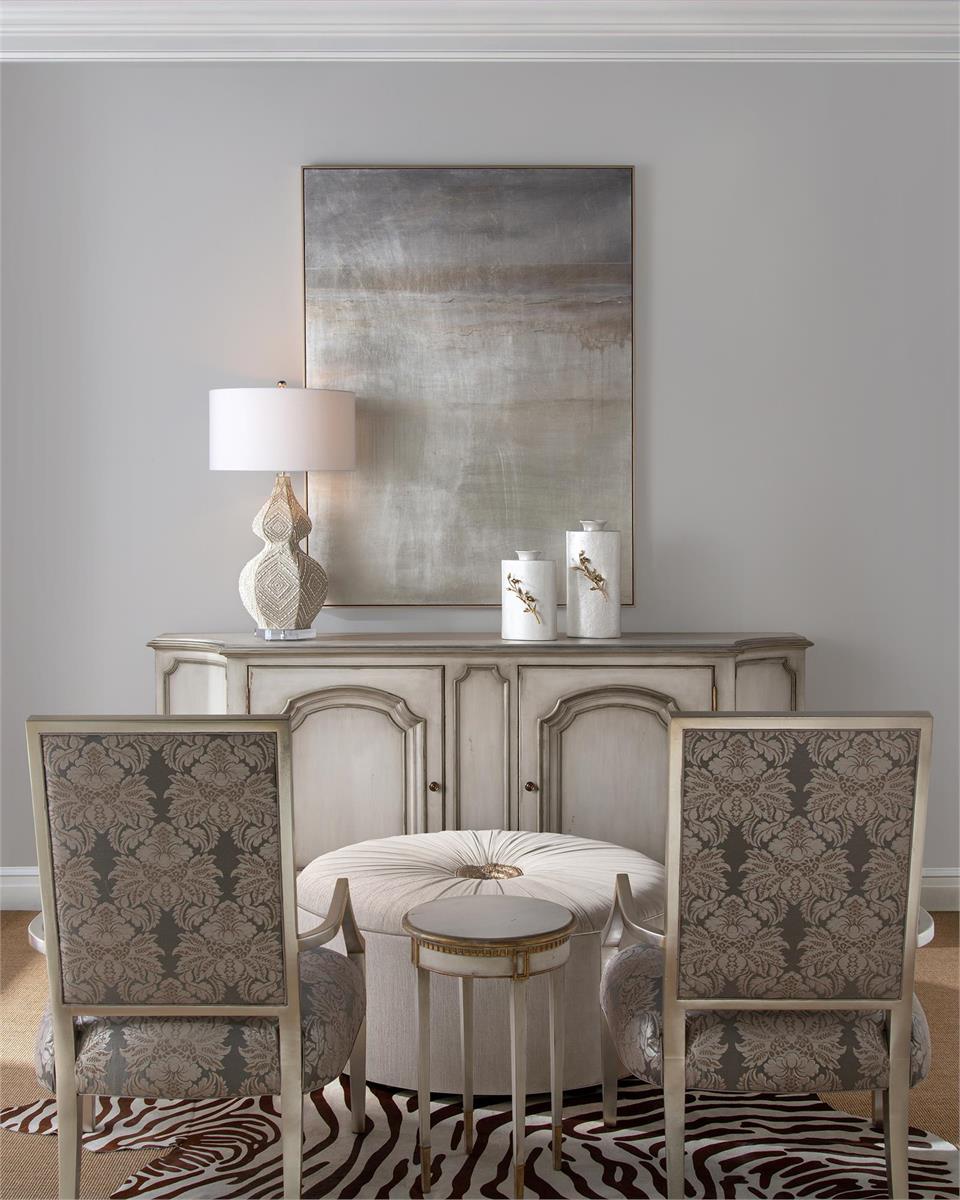 John Richard is known for a luxury high-end design aesthetic that mixes traditional elegance with modern and global influences. They draw from foreign cultures, historical design references, and exotic materials and finishes. Many pieces feature unusual veneers, exotic woods, stone, crystal and geode accents, reverse-painted glass motifs, hand-applied finishes, and metallic work. Buy John Richard Furniture at Hickory Park in Hickory, NC. — At Hickory Furniture Mart