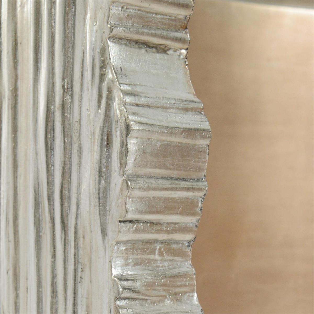 Product Description: John Richard EUR-03-0830 Pyrenees Cocktail Table - This sophisticated glass top cocktail table showcases a modern mix of gold and silver finishes. It features a circular base with an outer edge finished in textural Burnished Silver Leaf and a contrasting inner surface in smooth. Valyrian Gold Leaf.