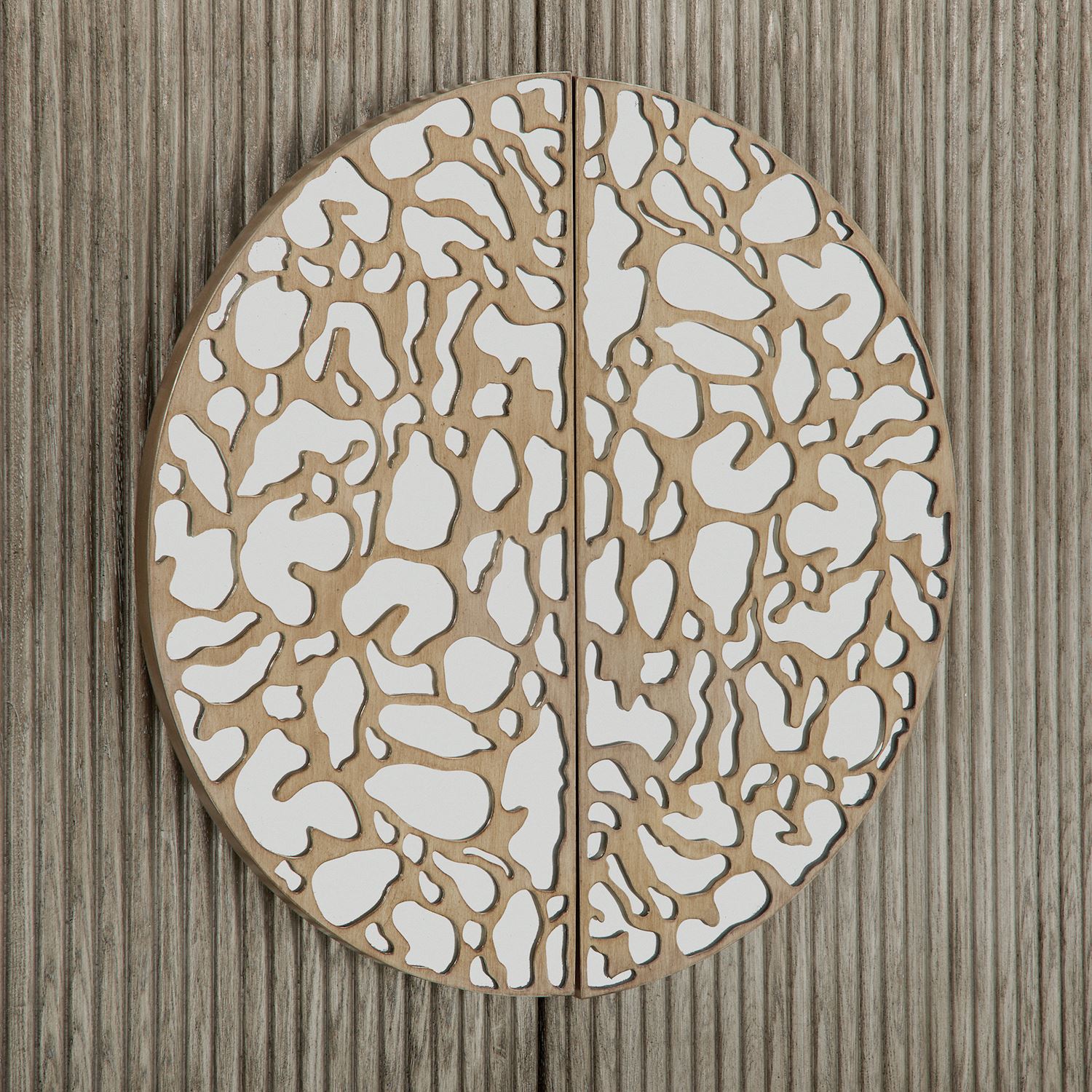 Product Description: John Richard EUR-04-0777 Moon Shadow Four Door Credenza - The Moon Shadow Four-Door Credenza is a gorgeous statement piece that exudes opulent style. A stunning wooden frame features a fluted pattern in a silver white finish that envelops the piece. A stylish metallic accent showcasing an organic pattern in Valyrian Gold is overlain atop mirrored glass, complementing both the mirrored tabletop and golden plinth base. This elegant design statement features four push-latch doors with European hinges, as well as three interior compartments with a single adjustable shelf.