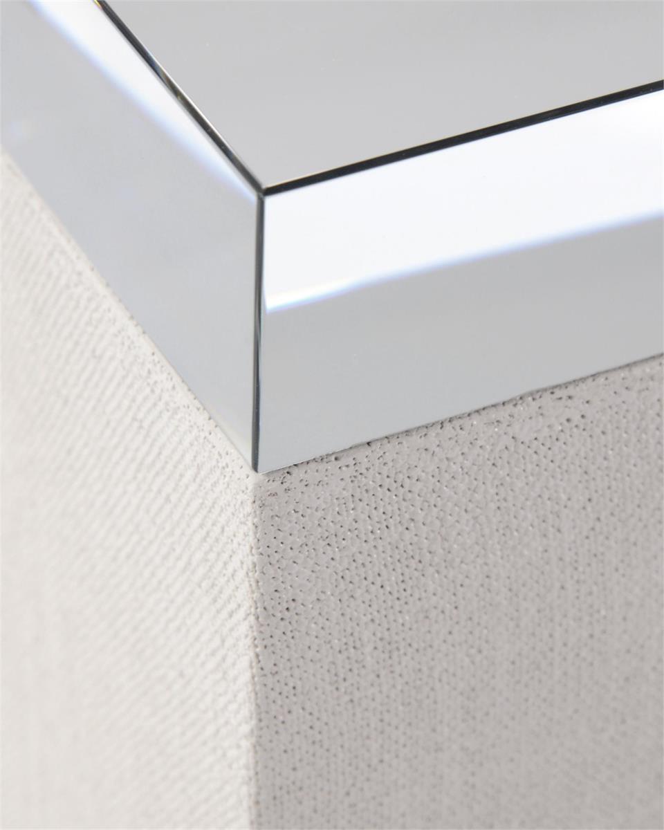 Product Description: John Richard EUR-08-0087 Belo Pedestal - A simple square pedestal wrapped in linen with a light wash finish is paired with a crystal glass top.