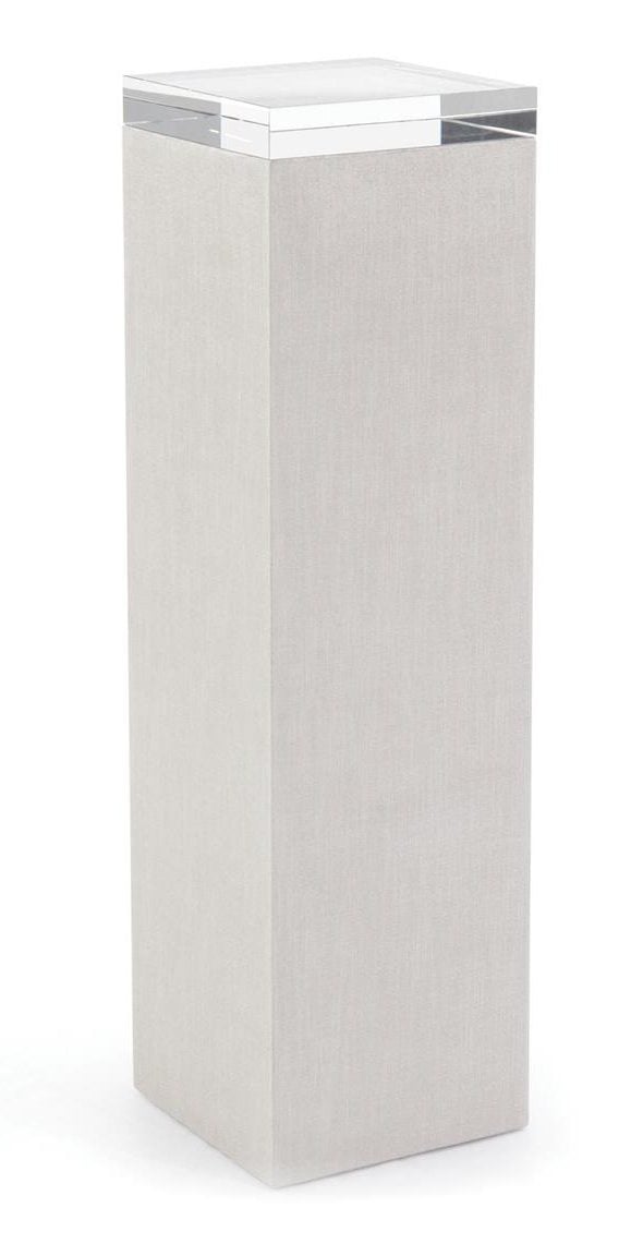 Product Description: John Richard EUR-08-0088 Belo Pedestal - A simple square pedestal wrapped in linen with a light wash finish is paired with a crystal glass top.