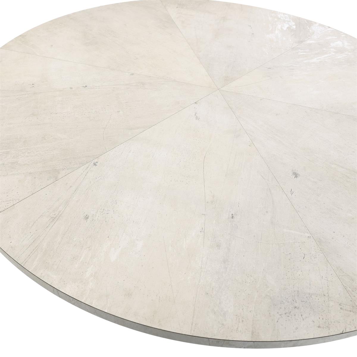 Product Description: John Richard EUR-10-0133 Lavertezzo Dining Table Small - The Lavertezzo Dining Table is a gorgeous centerpiece, imbuing a space with elegant curves and textures. Crafted from pristine wood and finished in Tiza Gesso, the table features a rounded surface with a segmented look, held aloft by gracefully twisting base.