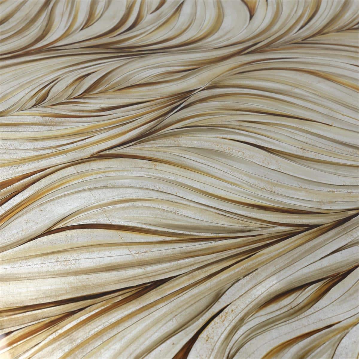 Product Description: John Richard EUR-10-0141 Florentine Dining Table - The Florentine Dining Table is defined by the fluid contrast of tone and texture. Its sculptural base in Valyrian Gold wraps the form in flowing ridges that introduce a striking sense of depth to any setting. Above, a tempered glass top is reverse painted by hand in an intricate silver and gold Florentine pattern, bordered by an oak veneer trim in a Gold White finish that subtly traces the edge. Adjustable glides ensure stability and ease of placement, completing a composition of luminous elegance and refined craftsmanship.