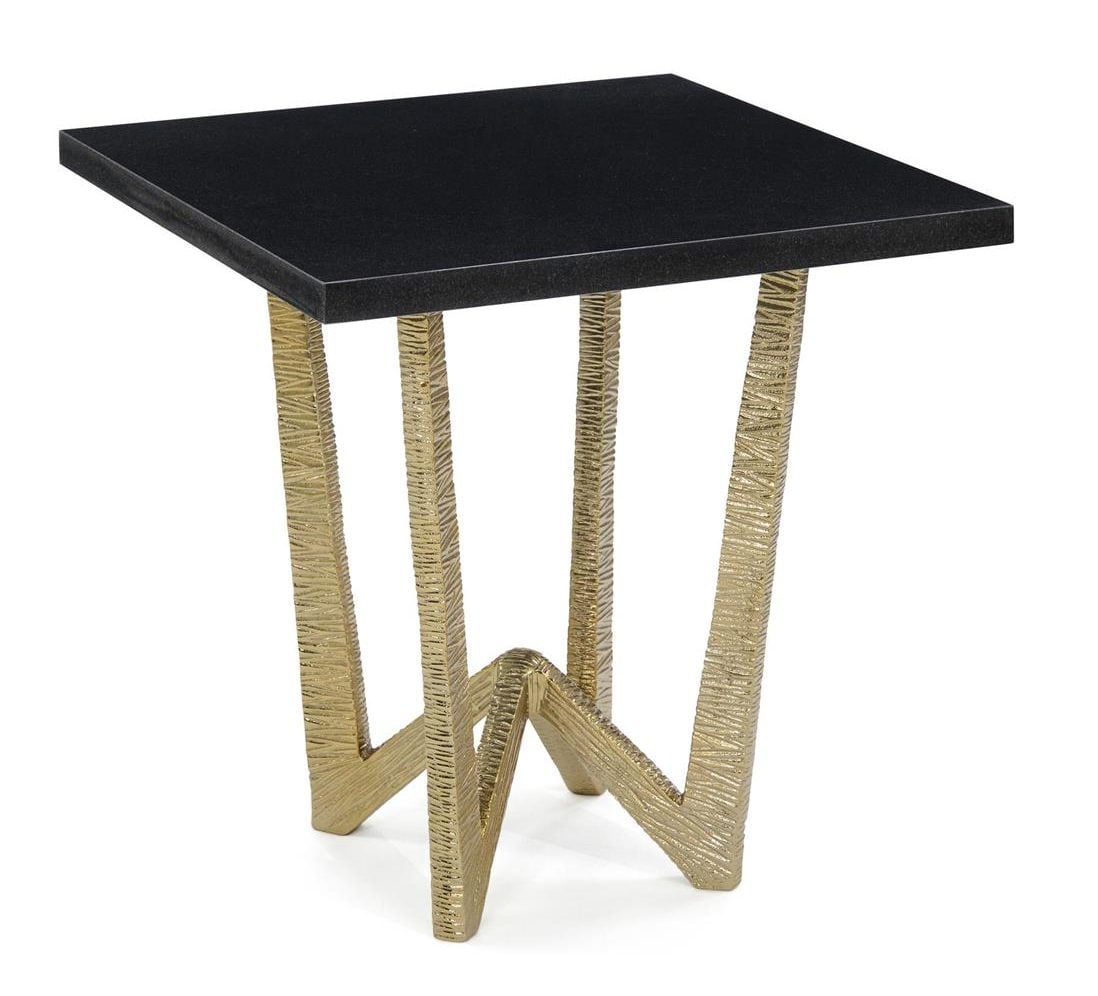 Product Description: John Richard JFD-0246 Calica Gold End Table - This end table features an angled, striated, and textured base in brass plating with a black granite top.