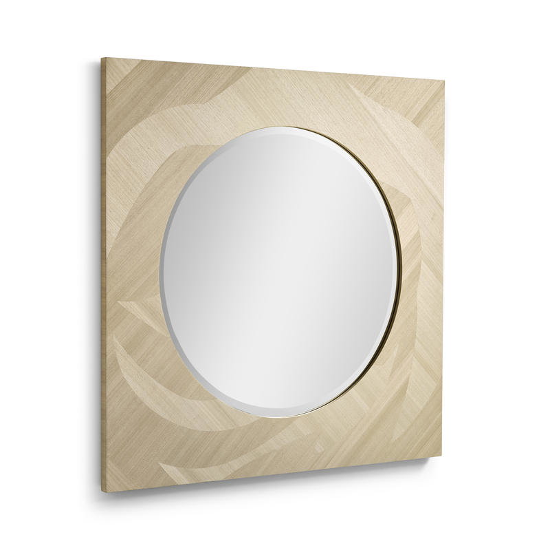 Product Description: Jonathan Charles 001-1-600-NLS Tidepool Square Mirror - The Tidepool Square Mirror is mesmerizing with it's stunning Koto veneer marquetry, meticulously arranged in circular motifs that mimic the intricate formations of a tidepool. The natural grain and rich tones of the Koto veneer add depth and warmth to the design, creating a focal point that captures the imagination and invites relaxation. Finish Name: Natural Dyed Koto