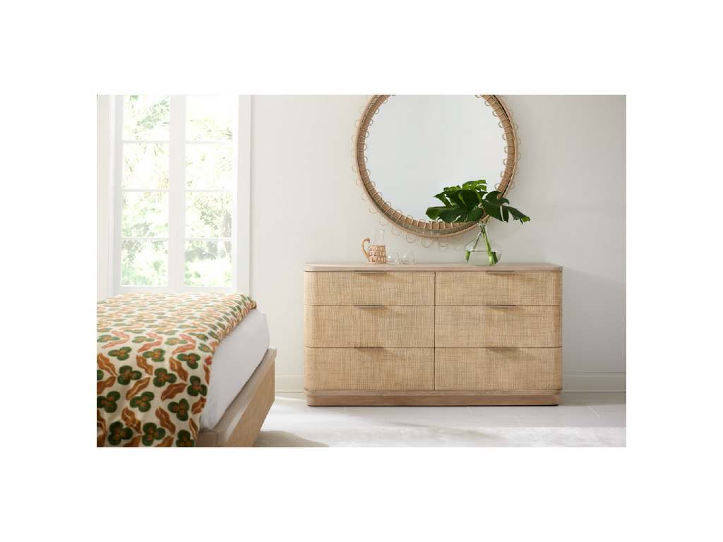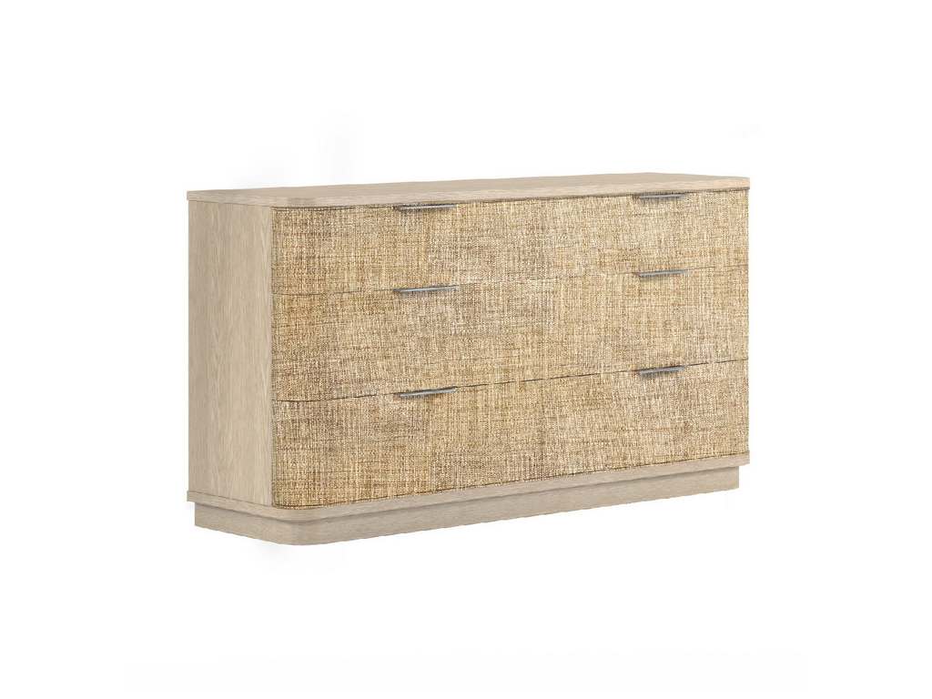 Product Description: Jonathan Charles 001-1-902-WWO Grasscloth Dresser - Born from passion with incredibly crafted aesthetic details, the Seiche Woven Wave Double Dresser’s captivating lines and sublime curves promise a new level of interior expression. Handwoven Grass cloth wrapped around six Bleached Oak drawers with custom cast hardware in an eclectic mix of materials that captures a dazzling sense of organic movement and form.