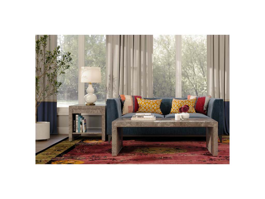 Product Description: 001-3-AL0-MDL A showstopper of Jonathan Charles' Water portfolio, the Surge Cocktail Table stands apart from a world of standardized choices. Inspirational design elements lead with a butcher block top and sides honed from mesmerizing Madrona Burl slabs finished in Smoke Gray. Understated metal accents along the base and ridges are finished in Satin White Brass for a delightful contrast and shimmering lightness. With an alluring surface and strong forms, Surge is sure to captivate audiences in contemporary interiors.