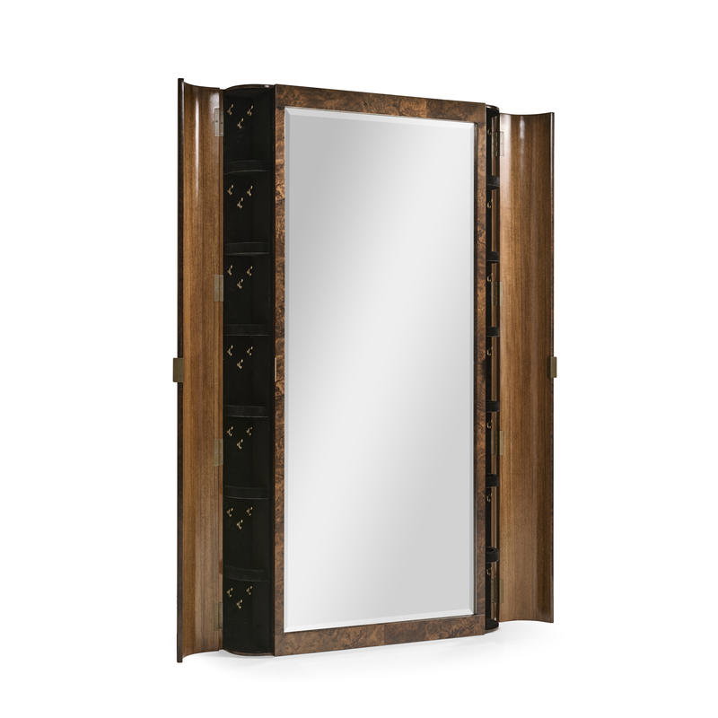 Product Description: Jonathan Charles 007-1-310-WBL Jacques Leaning Storage Mirror - Made of walnut wood with a wire-brushed finish. Leans against the wall for a space-saving solution. Offers storage shelves for keeping essentials organized.