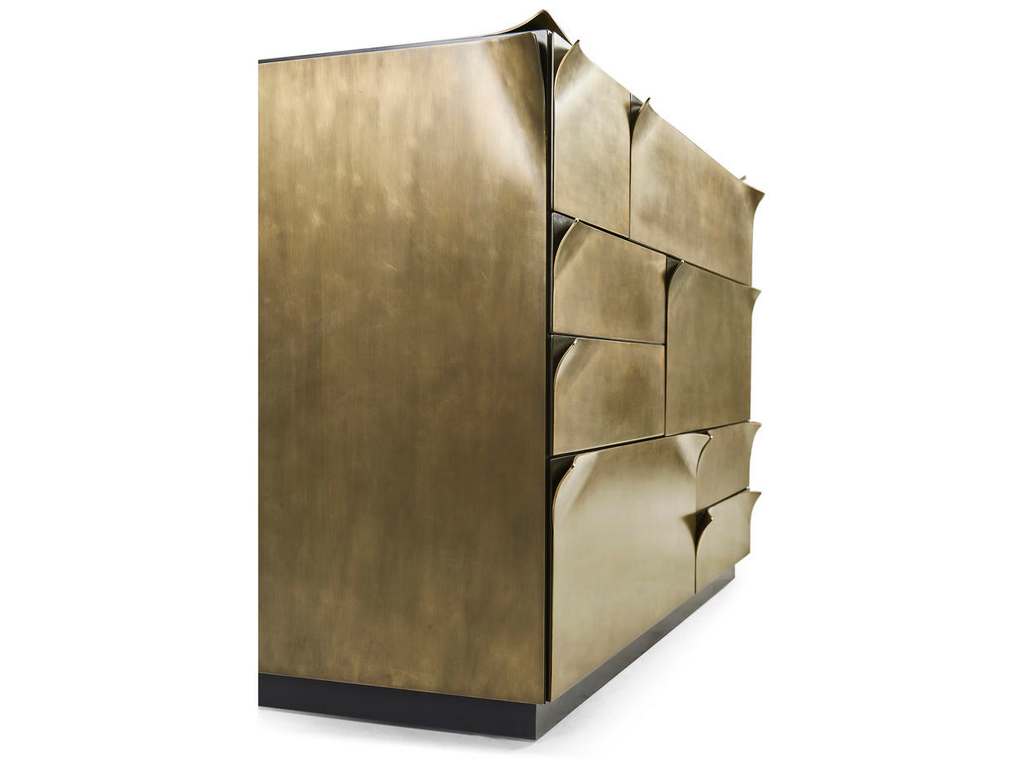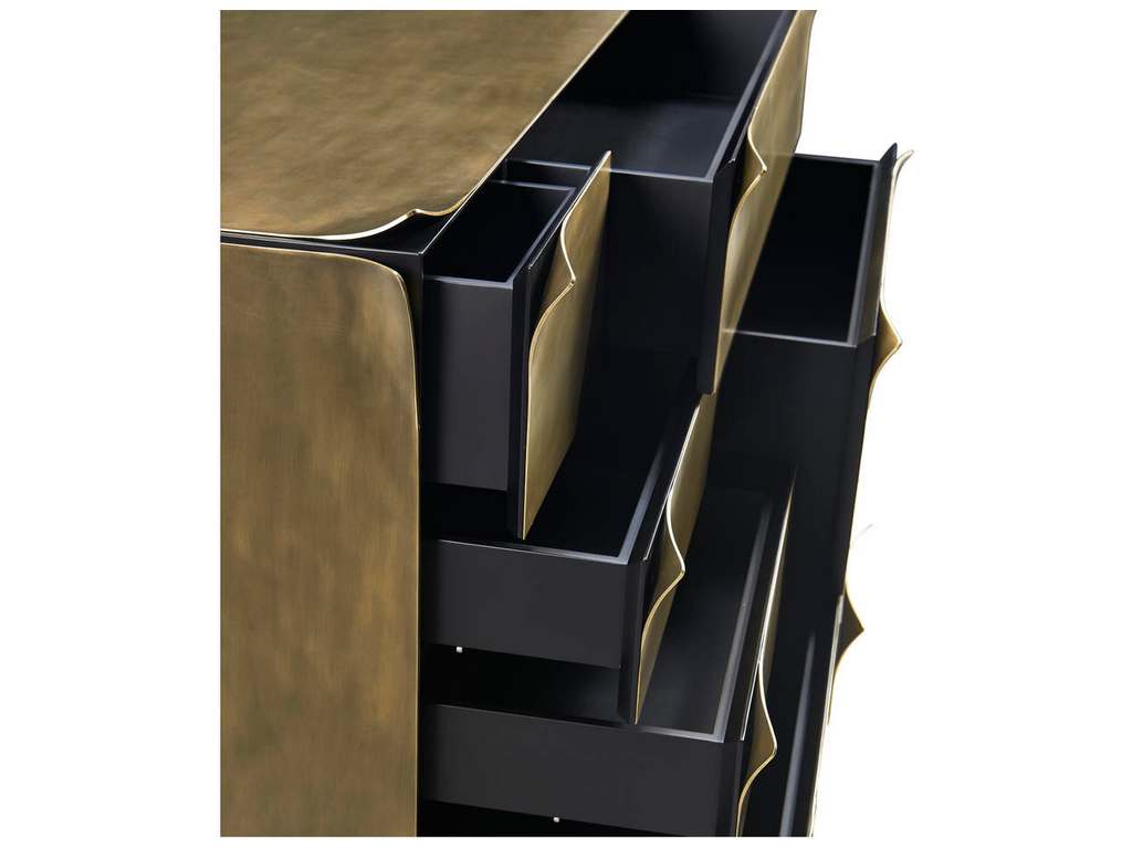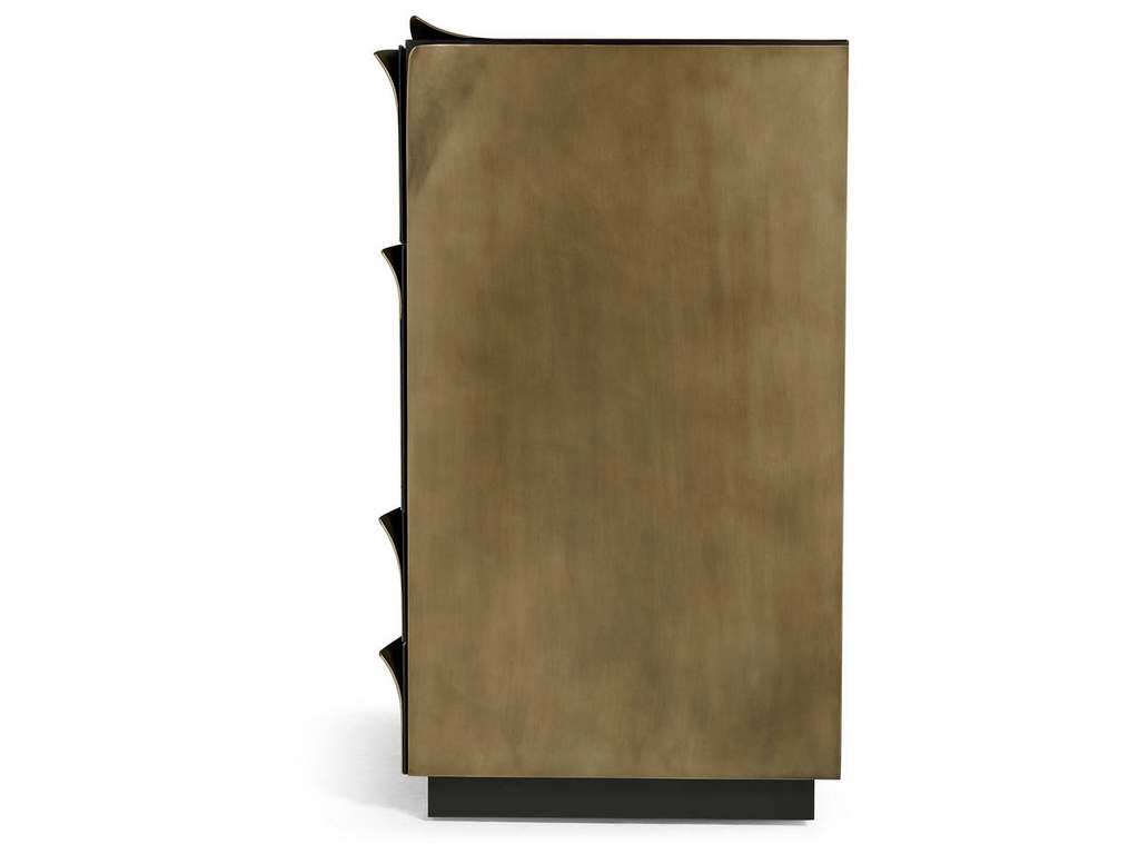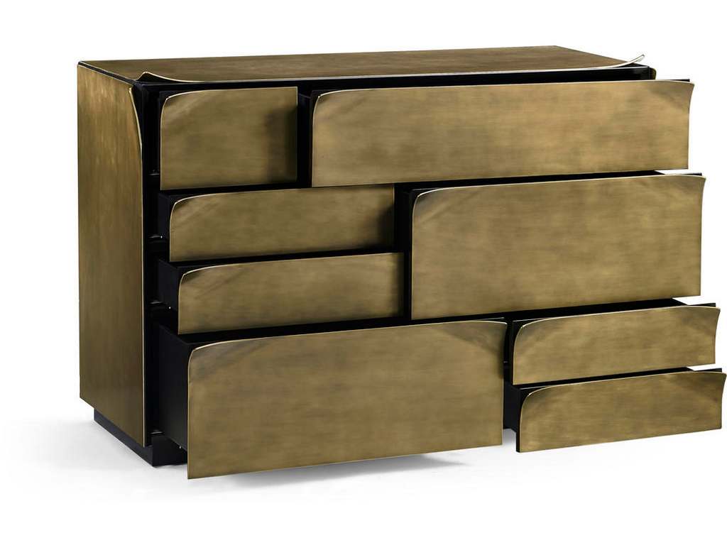 Product Description: Jonathan Charles 007-1-900-SBR Hammersmith Drawer Chest - The Hammersmith Drawer Chest combines bold design with sleek sophistication. Wrapped in bent brass sheets for added depth, it features soft-close drawers and a strong architectural presence. Both stylish and functional, it makes a refined statement in any bedroom or living space.