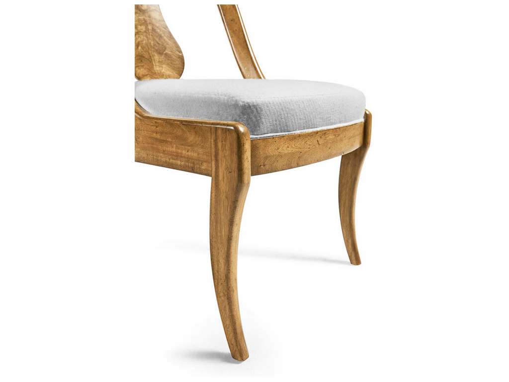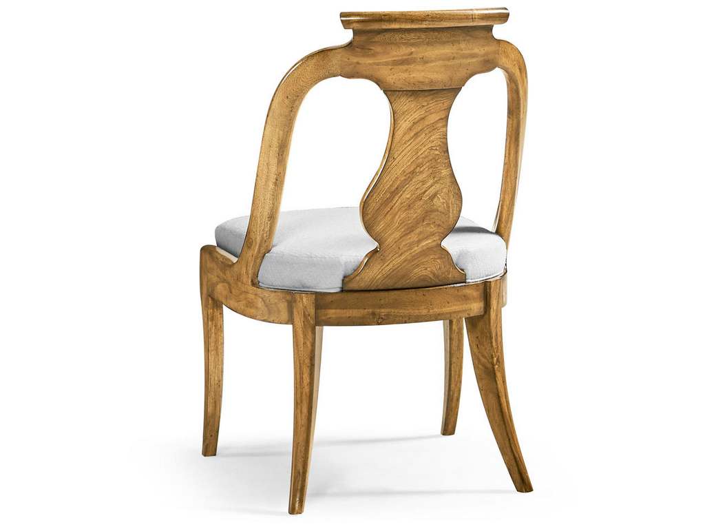 Product Description: Jonathan Charles 007-2-125-NCJ Vermeer Dining Chair - Featuring a gently curved splat back that combines visual elegance with comfortable support. The standout feature is the Cerejara veneer, which flows gracefully along the splat back, adding a striking natural pattern to the design. A cushioned seat upholstered in a neutral performance fabric enhances both comfort and durability, making it perfect for gatherings with family and friends.