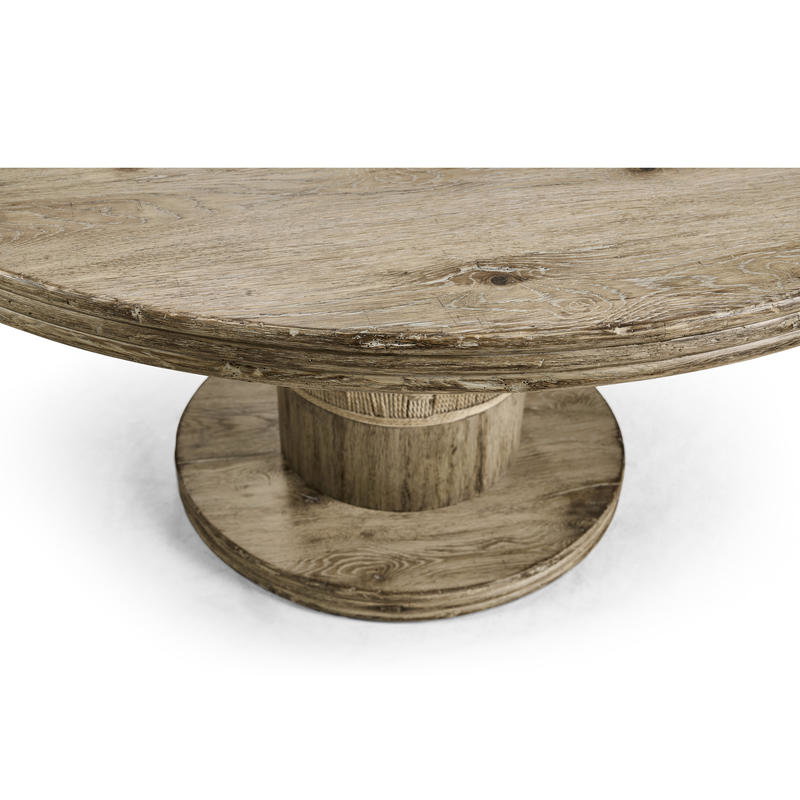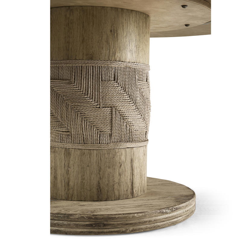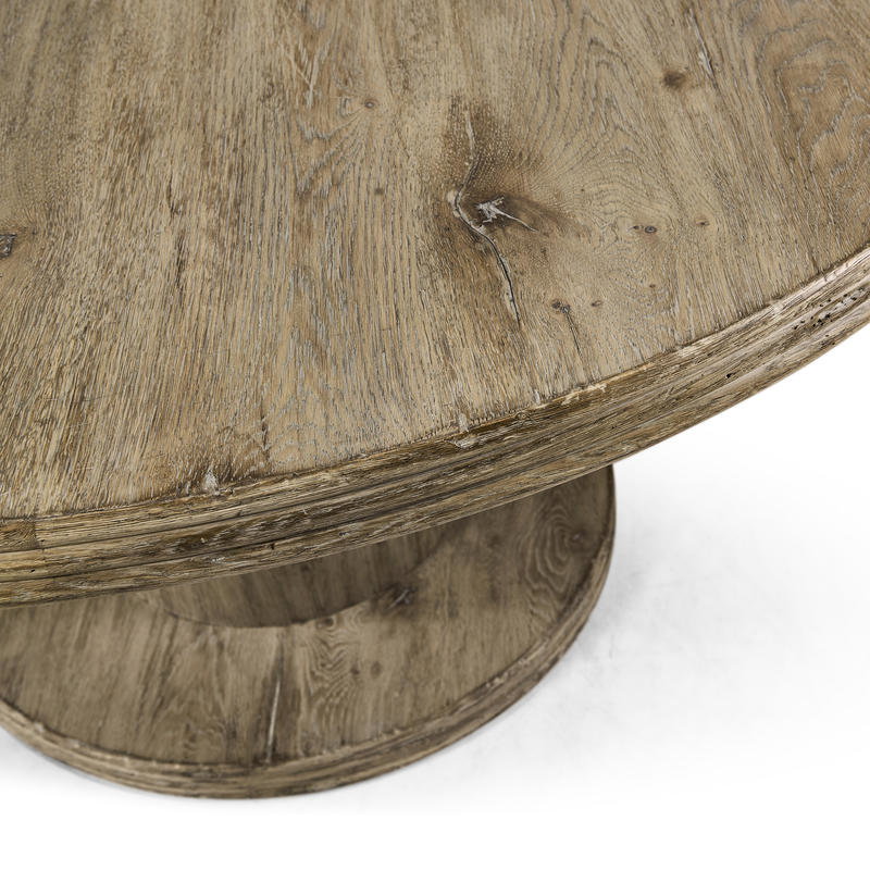 Product Description: Jonathan Charles 491232-TGO-60D Sagehill Round Dining Table - The Sagehill Round Dining Table is a stunning blend of rustic charm and casual elegance. Crafted with meticulous attention to detail, the table features an intricate rush pattern on its pedestal base, adding a unique and textured focal point to any dining space. The solid wood top showcases the weathered grey oak finish, offering a timeless look that complements a variety of interiors.