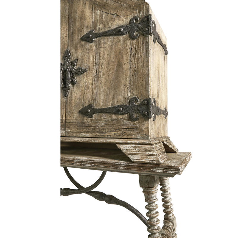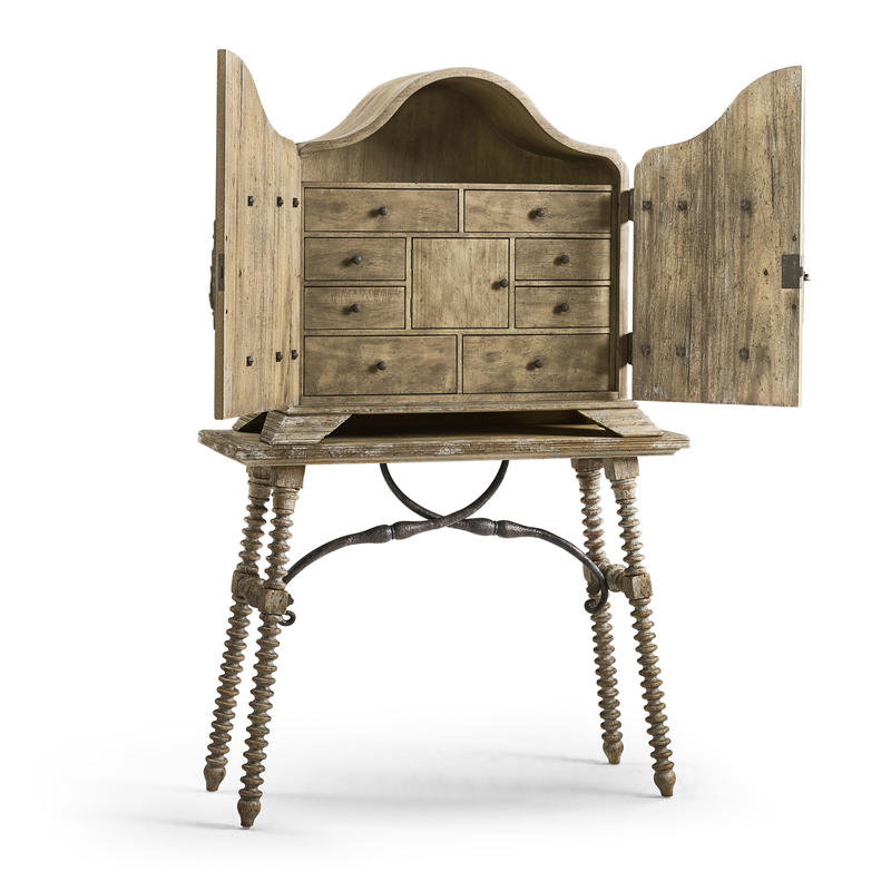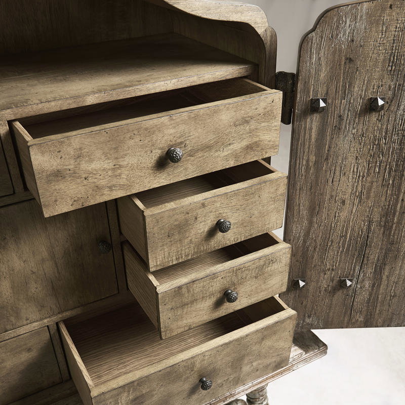 Product Description: Jonathan Charles 491246-LSW Caldera Box Cabinet - The Caldera Box Cabinet embodies timeless sophistication with its Spanish-style silhouette and expert craftsmanship. Constructed from greyed oak wood, this cabinet exudes a subtle, rustic charm, while the painted accents provide a touch of antique flair, making it a striking focal point in any room. Behind the central door lies a thoughtfully designed interior, featuring one central drawer and eight small drawers, perfect for organizing smaller items with ease. This combination of elegance and functionality makes the Caldera Box Cabinet a versatile and stylish addition to your living or dining space