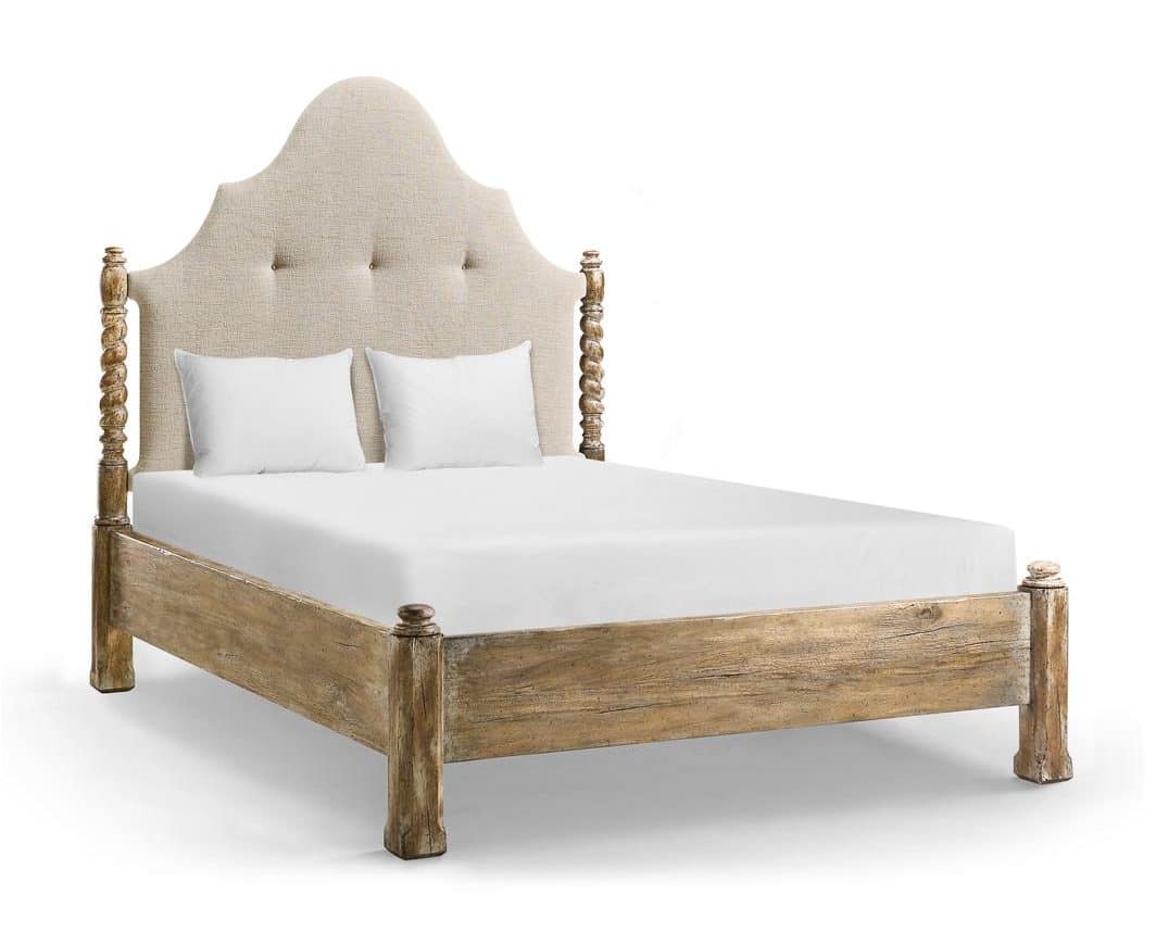 Product Description: Jonathan Charles 491294-LSW-Q-F400 Caldera Poster Queen Bed - The Caldera Poster Bed blends timeless Spanish influence with refined craftsmanship. Built from acacia in a Light Spain Painted Walnut finish, this bed features tall, turned posts that frame a gracefully arched, upholstered headboard. Painted accents enrich the wood's natural grain, while the hand-applied finish adds rustic warmth. For added versatility, the bed includes removable posts that can be capped for a more streamlined look. With its dramatic silhouette and tailored upholstery, the Caldera Poster Bed brings heirloom style and modern comfort into perfect balance.v