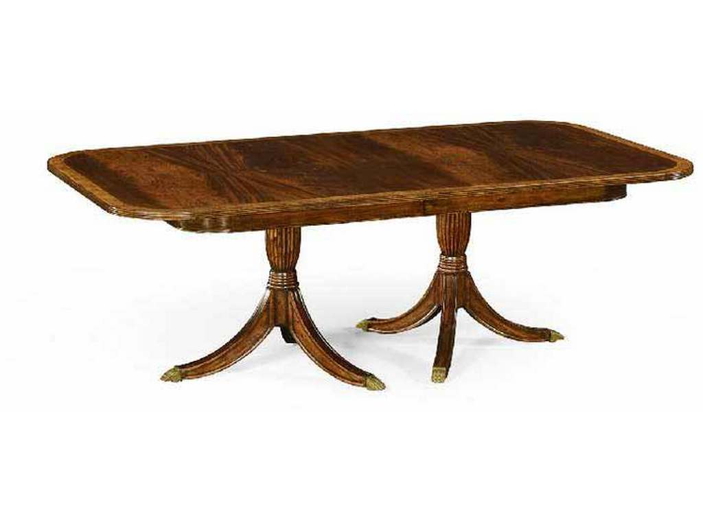 Product Description: Jonathan Charles 492865-88L-MAH Buckingham Two-Leaf Mahogany Extending Dining Table 88 Inch - Classic Regency style extending dining table with fine crotch mahogany veneers to the top. Set on twin pedestal baluster bases. Can be extended with the addition of two 22 inch drop-in leaves.