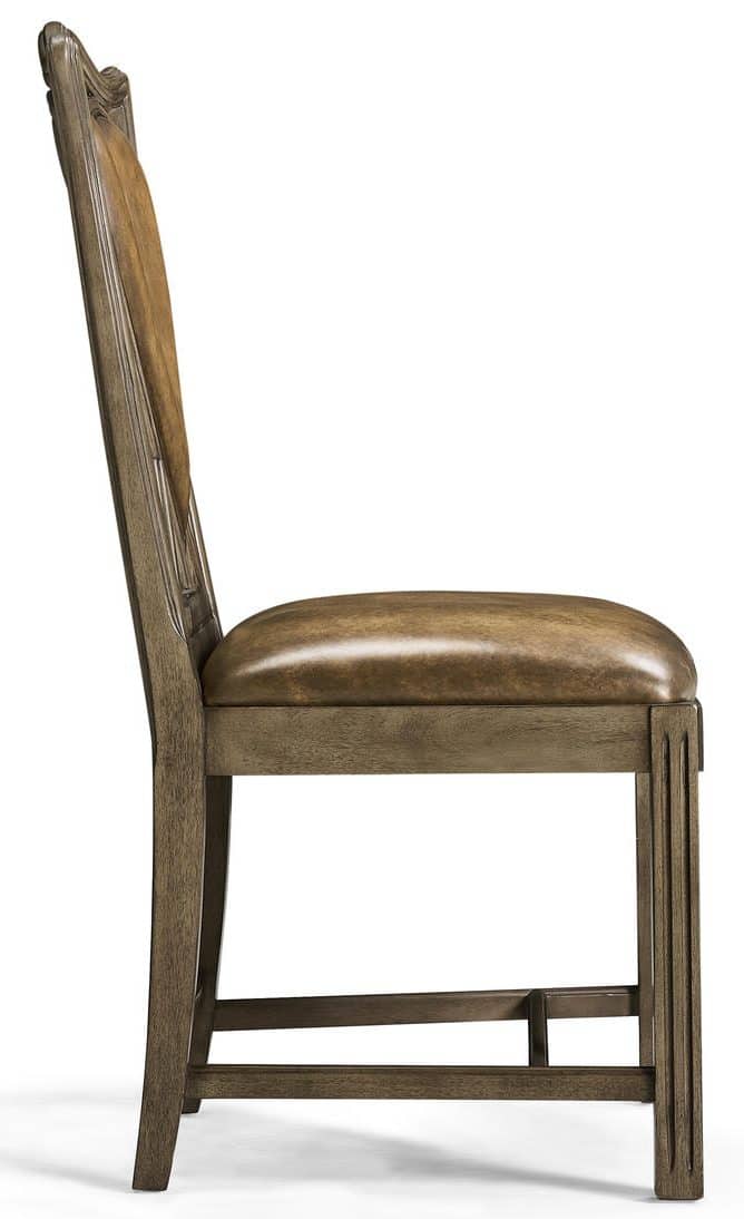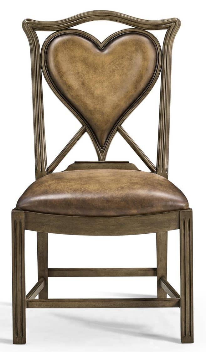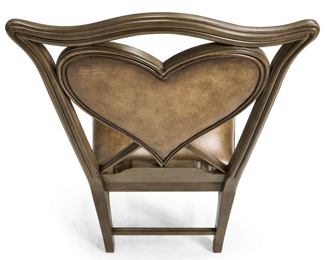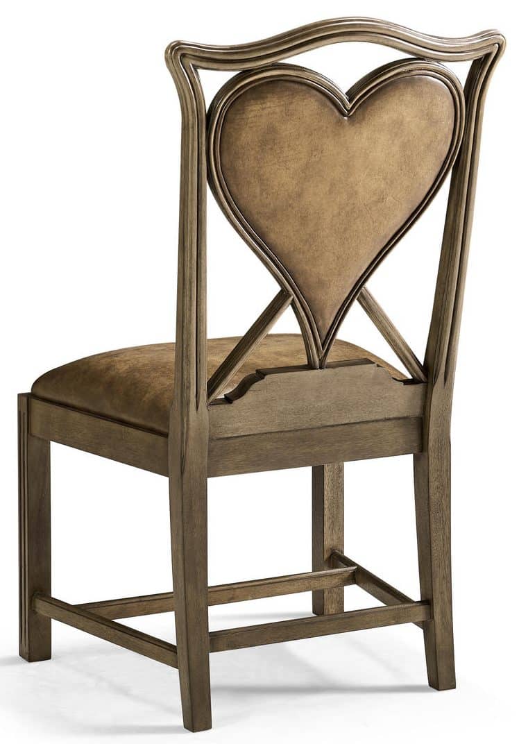 Product Description: Jonathan Charles 493359-SC-MBL-L041 Playing Card Heart Side Chair - Unusual mahogany side chair based on an 18th century shape the serpentine rail above a Buckingham brown leather back panel in the shape of a heart, reeded straight front legs and raked rear legs. Ideal for poker and bridge.