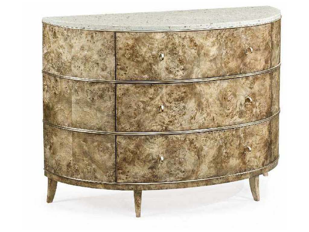 Jonathan Charles Furniture Demilune Golden Ambur Burr Chest of Drawers (SKU: 496007-BGA) is available at Hickory Park Furniture in Hickory, NC and nationwide. We delivery anywhere.