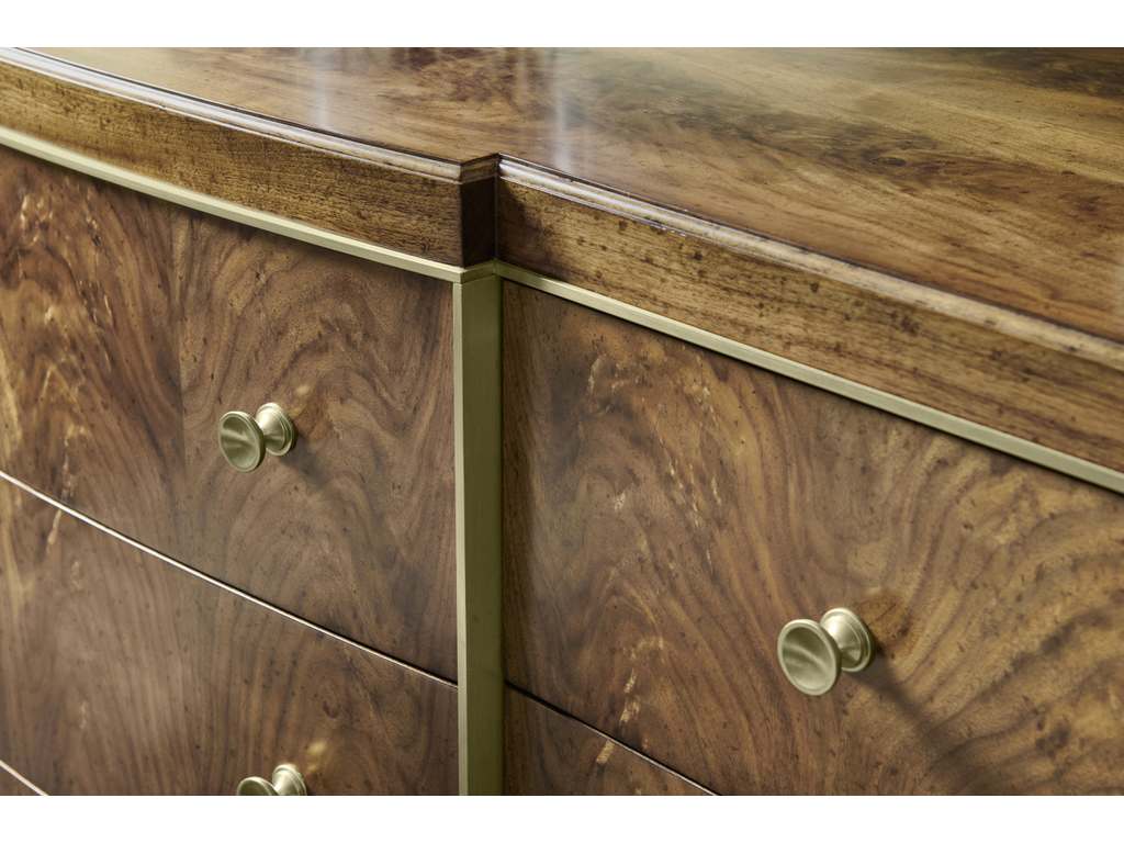 Product Description: Jonathan Charles 496065-WBA Barcelona Dresser - The cabinet is constructed of walnut with a transparent, low luster finish. Drawer fronts feature walnut swirl in a traditional book match pattern. Hardware is cast in our foundry and finished in a light, champagne patina. Drawers include a soft close mechanism.