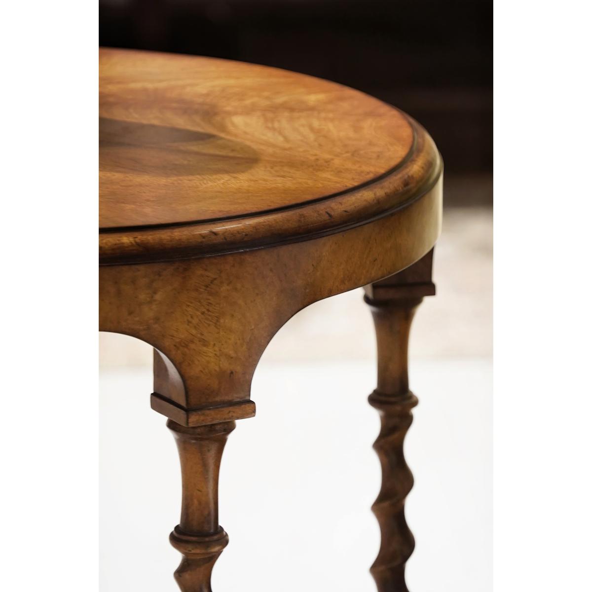 Product Description: Jonathan Charles 496225-CCJ Orsman Round Side Table - The Orsman Round Side Table showcases timeless craftsmanship and elegant proportion. Its round top, crafted from richly grained wood in a Carmel Walnut finish, rests atop six beautifully turned legs joined by an interlaced quatrefoil stretcher. The sculptural base adds structure and visual rhythm, balancing the table’s graceful curves with refined architectural form.
