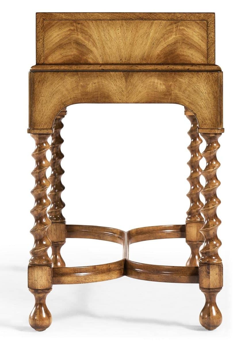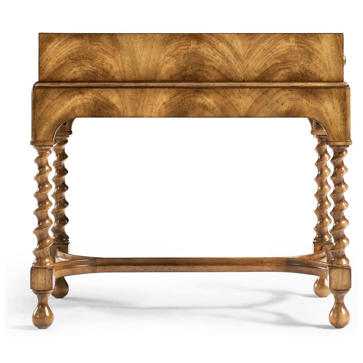 Product Description: Jonathan Charles 496232-CCJ Orsman Cresent Side Table - Expertly crafted from Acacia solids and Cerejeira veneers, it features a rectangluar shaped top and fluid crescent apron framed in the warm Caramel Cerejeira finish, bringing out the expressive movement of the veneer. A single drawer provides discreet storage, while the table is elevated on intricately turned spiral legs that echo classic craftsmanship. An arched, sculpted stretcher unites the base, adding stability and a graceful architectural foundation. Compact yet richly detailed, this side table brings warmth, texture, and timeless character to any setting.
