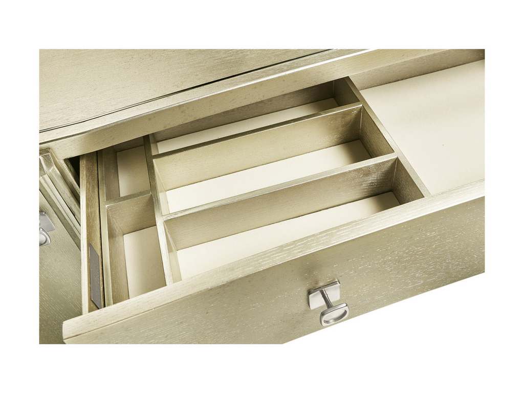 The best of 20th century European modern sensibilities are brought to life using exquisite craftsmanship, unexpected applications of walnut veneer and eye-catching metal accents. Elevating Toulouse Collection's design signature is the expertly applied heritage craft of duck eggshell inlay, evoking a sense of timeless art in modern form