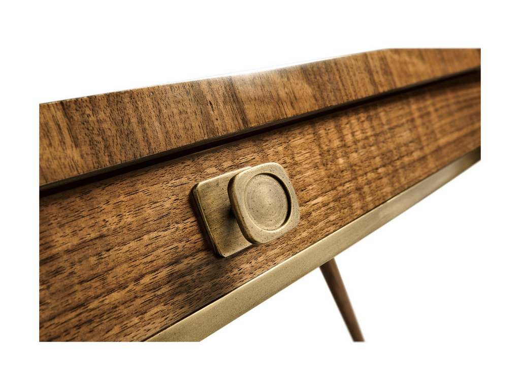 Product Description: Jonathan Charles 500376-WTL Toulouse Desk - Influenced by the work of the French Modernists, this desk features figured walnut veneer, in a radial slip match pattern. Legs are solid walnut with brass hardware. Hardware is cast in the Jonathan Charles foundry where it is acid dipped and hand rubbed to achieve a rich, natural patina.