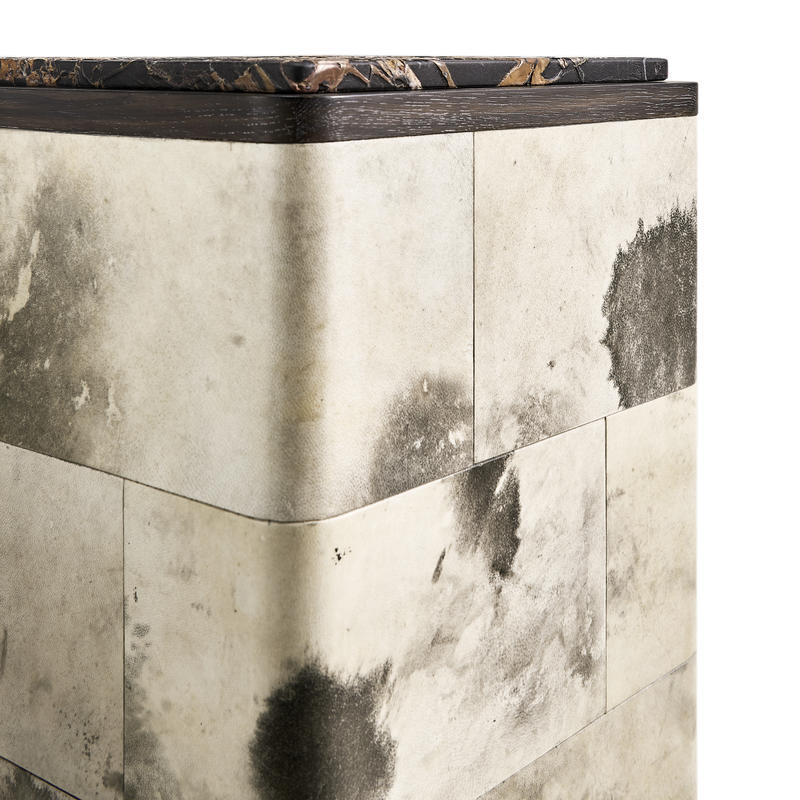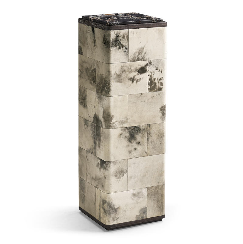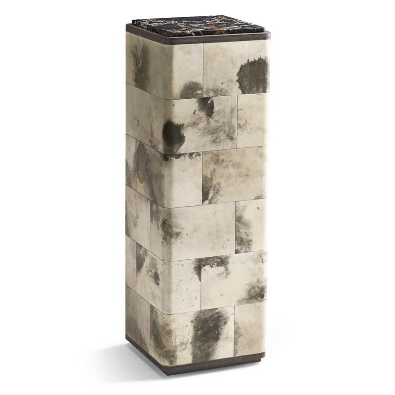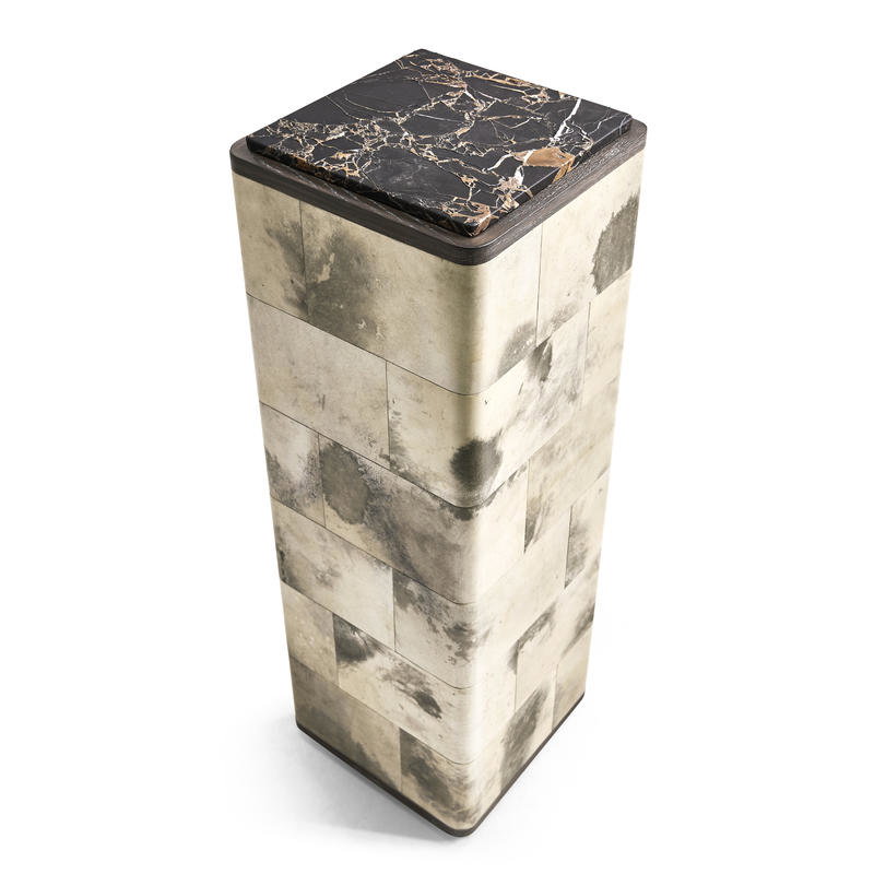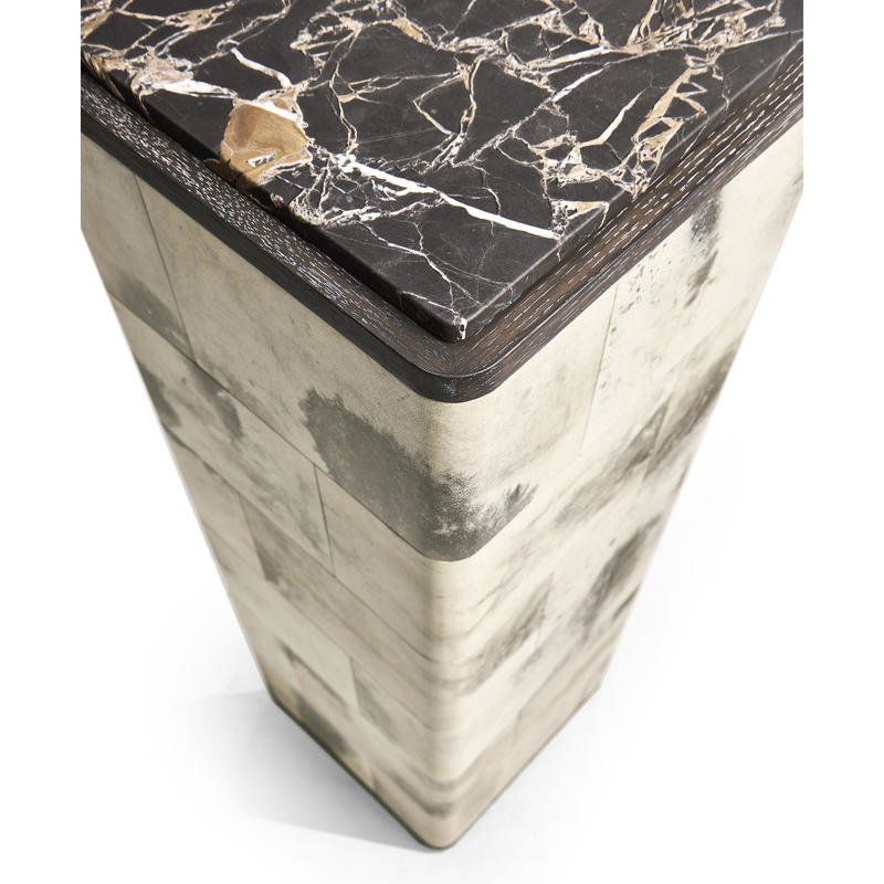 Product Description: Jonathan Charles 500557-BWP Truett High Pedestal Table Black And White - The Truett High Pedestal Table features a refined blend of materials, showcasing a sleek oak frame finished in a warm Chocolate Apricot tone. The pedestal is elegantly covered in marbled parchment, adding a layer of texture and sophistication to the design. Topped with a luxurious marble surface, crafted using a unique in-house carving technique that adds remarkable depth, dimension, and subtle color variations, this table becomes a true statement piece. Perfect for adding a focal point to any room, the Truett Low Pedestal Table seamlessly combines natural materials and modern artistry.