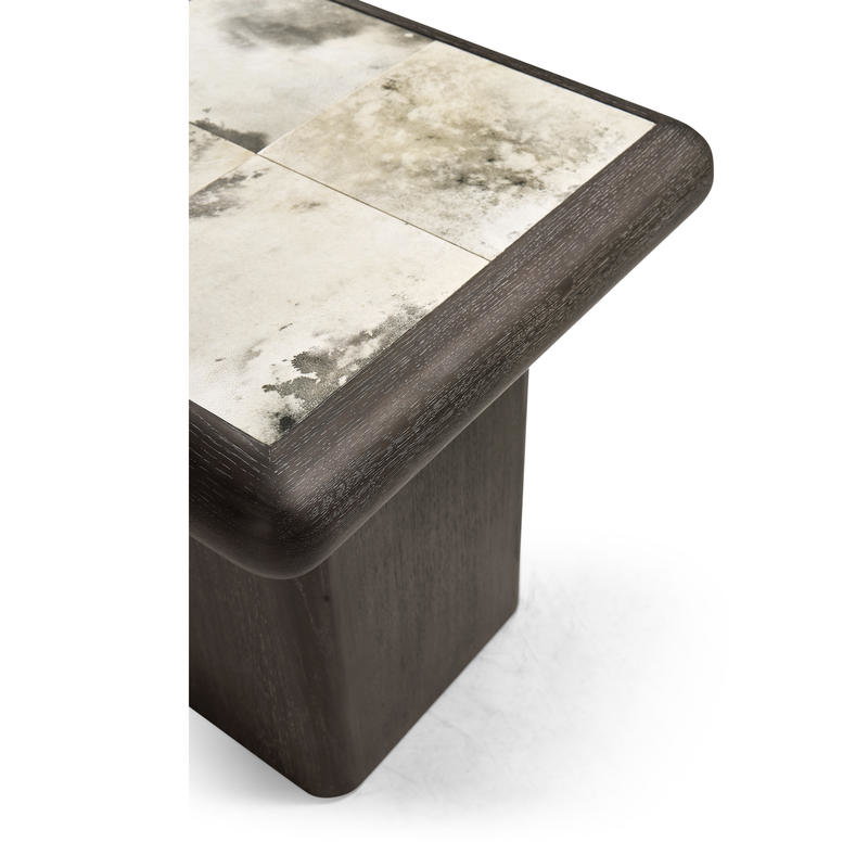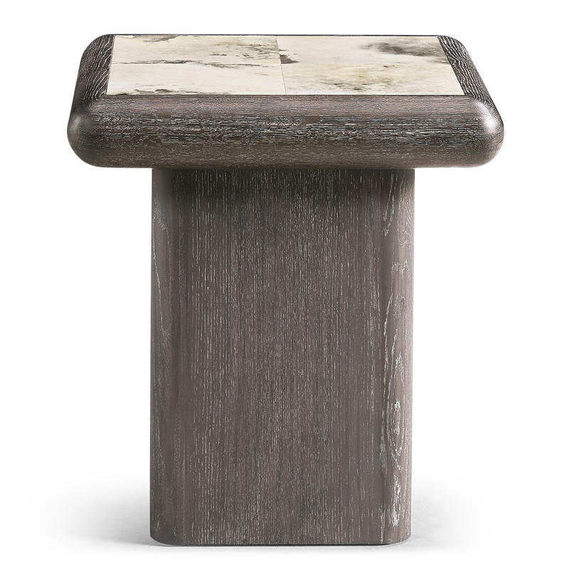 Product Description: Jonathan Charles 500559-BWP Truett Square Side Table - The Truett End Table showcases a refined blend of materials, featuring a sleek oak frame and a striking marbled parchment top. Finished in a warm Chocolate Apricot tone, the oak base offers a rich and inviting presence. The inset marbled parchment adds a captivating focal point, enhancing the table’s modern aesthetic. Perfect as an accent piece, the Truett End Table effortlessly merges natural textures with contemporary design for a stylish addition to the room.