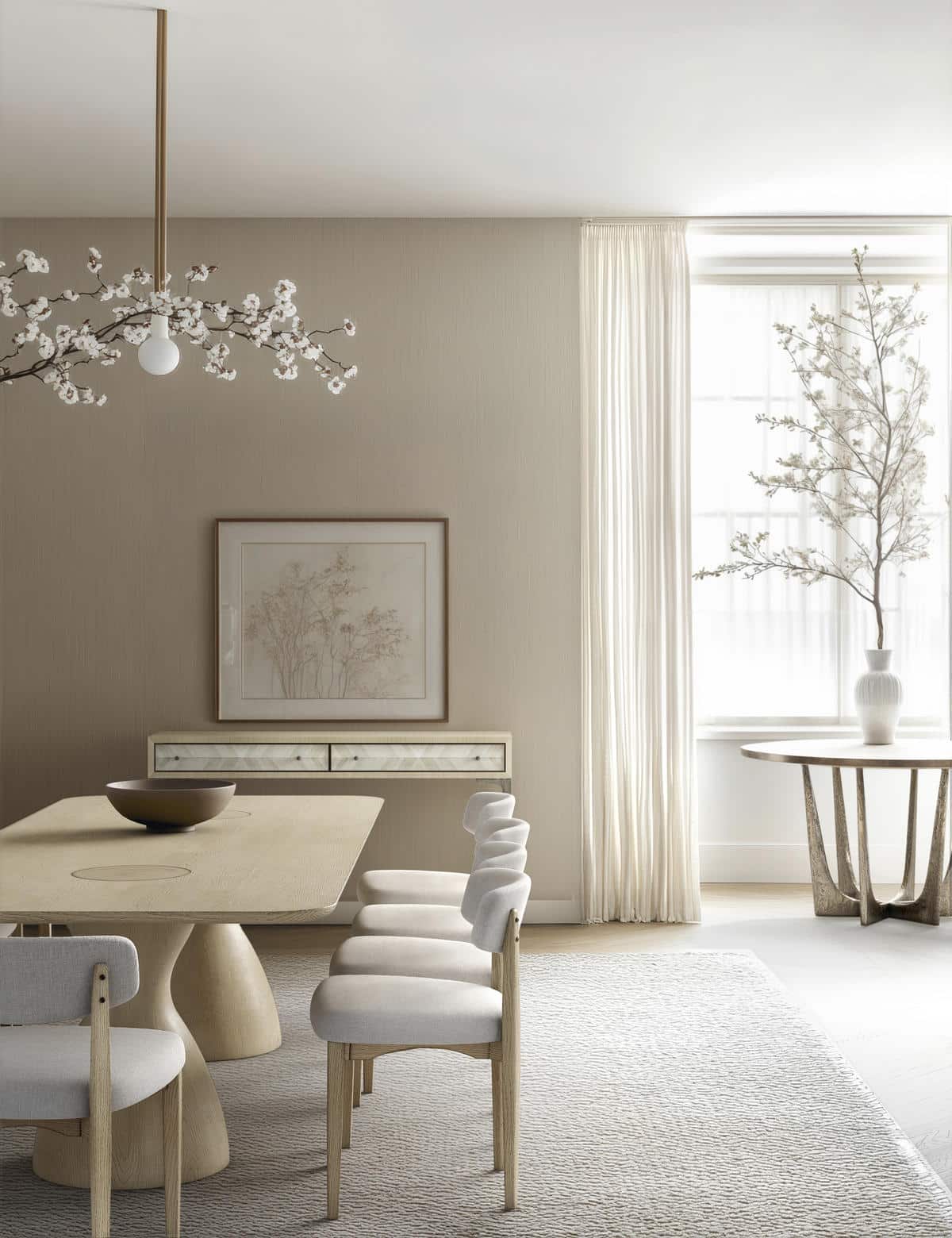 Rich with artful visual touches, the stirring Jonathan Charles Water Portfolio is flawlessly crafted and imbued with the luxurious textures of natural woven grasscloth, soft cream leathers, bone inlay and Koto veneers. This eclectic mix of materials, paired with sinuous and flowing architectural features reminiscent of waves, is a showcase of delightful dynamism with contrasting line and form. An exquisite appointment package of hand cast,custom hardware accentuates htis exceptional furniture portfolio.