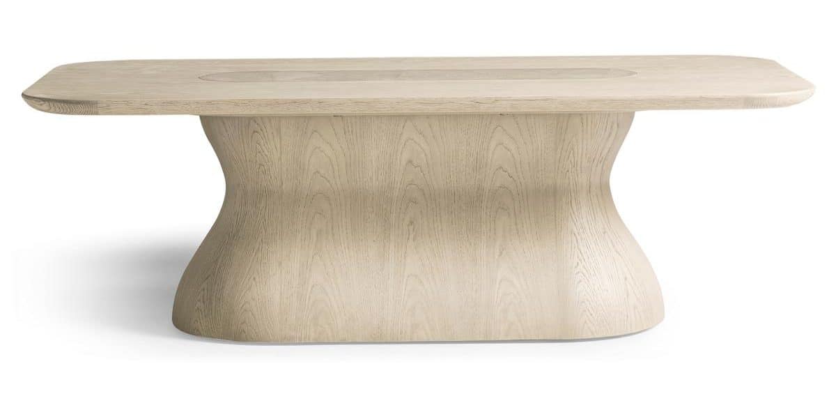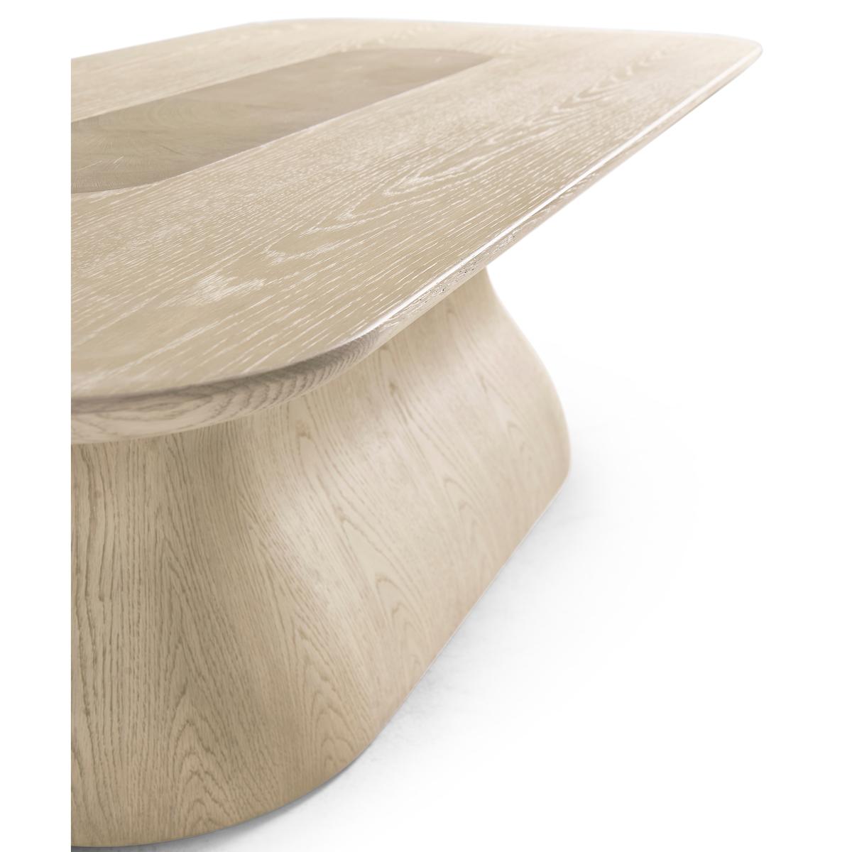 Product Description: Jonathan Charles 500583-BLO Seamount Cocktail Table - The Seamount Cocktail Table brings sculptural serenity to the heart of your living space. Its fluid, monolithic form is wrapped in White Washed Oak, offering a softly organic presence. The oyster-cut veneer top highlights natural variations in wood grain, while the low, rounded silhouette provides a grounded sense of calm. Thoughtfully constructed using a blend of solid and engineered woods, this piece delivers both beauty and enduring strength.