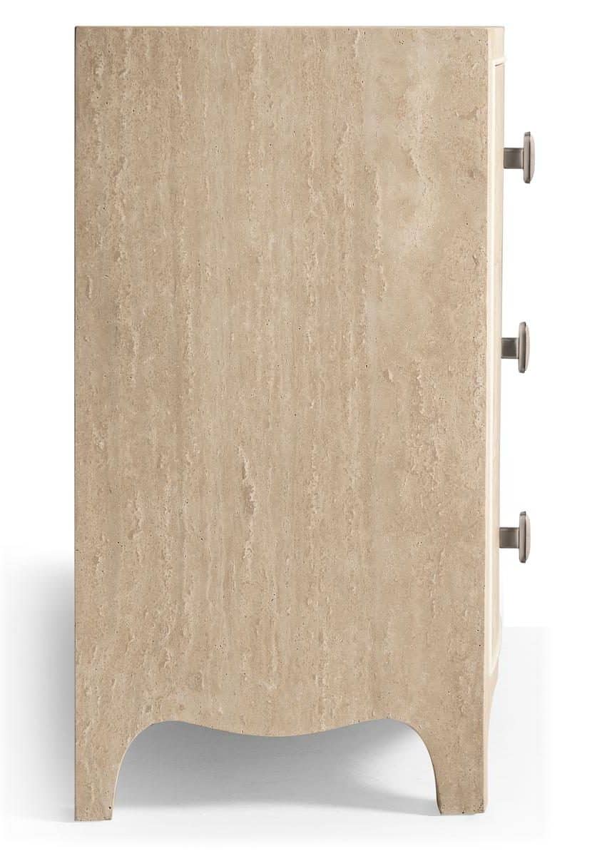 Product Description: Jonathan Charles 500598-NTS Stoneleigh Travertine Chest - The Stoneleigh Travertine Chest is a masterwork of natural luxury, fully clad in honed travertine stone. Each drawer is framed in bone inlay, lending subtle definition and contrast to the stone’s organic patterning. The chest’s quiet geometry and refined materials make it a sculptural centerpiece for sophisticated interiors.