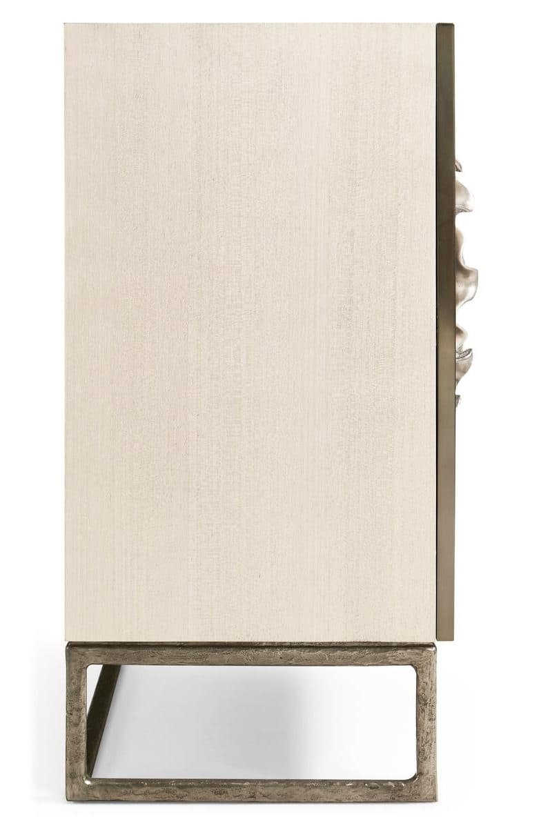 Product Description: Jonathan Charles 500599-NDK Cynaria Sideboard - Its hardware, hand-cast to resemble coral, brings an artful organic touch to the clean-lined form. Finished in a soft neutral tone, the piece offers refined storage that evokes coastal sophistication with modern polish.