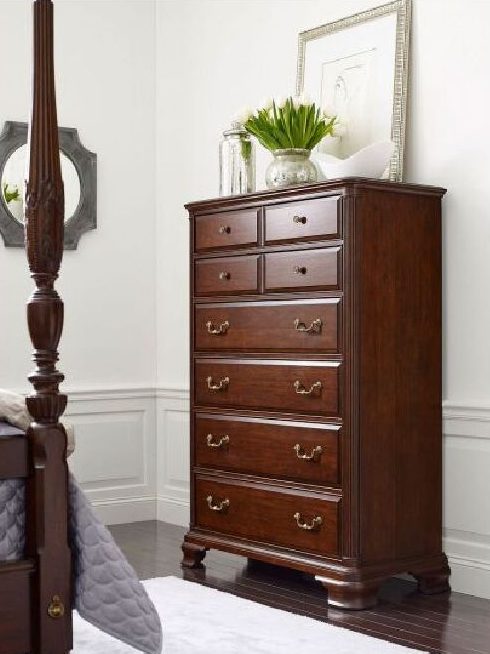 Product Description: Kincaid Furniture 607-215 Hadleigh Drawer Chest - This is the quintessential chest of drawers. What we imagine when we think of classic, fine furniture. Featuring eight beautifully fitted drawers, the Hadleigh Drawer Chest is exactly what it appears to be, both inside and out. It includes our standard English dovetailed drawers, adjustable soft-close glides, dust-proofing between the drawer interiors, corner-block bracing, floating tops, a hand-rubbed multi-step finish, built-in levelers, and Kincaid's famous solid wood construction (of-course).