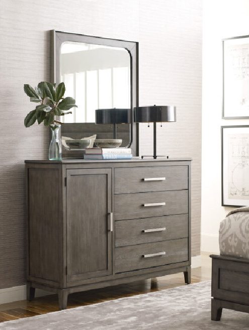 Product Description: Kincaid Furniture 863-250 Cascade Garrison Door Bureau - Starting with a design concept that called for capturing the beauty and unique character of different wood species, the Cascade Collection features style built around materials and textures. Clean silhouettes like the Garrison Door Bureau offer a dresser option that adds the benefit of a door that conceals shelf storage in an attractive asymmetrical layout. Behind the door are two adjustable (or removable) shelves and the top two drawers feature removable dividers making organized storage its greatest feature.