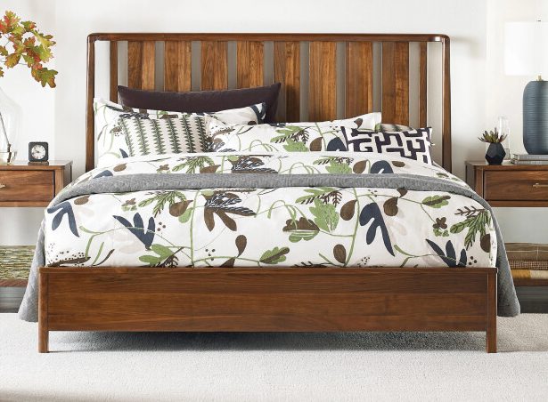 Product Description: Kincaid Furniture 315-304P 5/0 Ashburn Slat Bed Package - The Ashburn walnut bed is among the most unique pieces in the Monogram Walnut collection. The beauty of this bed is best seen in confluence of subtle details and shapes that set it apart. The centerpiece of those details is the inward beveled solid walnut slats that create dimension and reflection. This allows light to interact with the natural grain of the walnut. A simple but carefully shaped frame creates the structure of the headboard, supporting the slats with a shelter bed. Each element is simple and at the same time intricate as they accentuate the the character of the walnut.