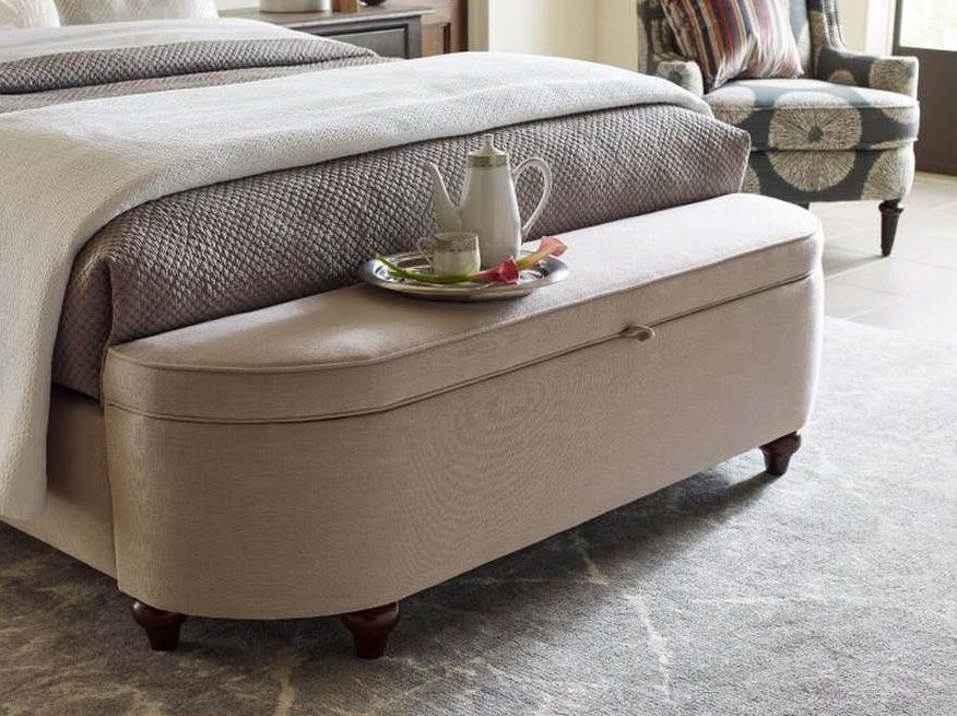 Product Description: Kincaid Furniture UPH-10-066S KING STORAGE FOOTBOARD - A functional option to complete a Kincaid upholstered headboard is our upholstered storage footboard. It could just as easily be called a "bench footboard" since it is the perfect height to have a seat on! And just like the headboards and matching footboards, it can be ordered in any of our custom order fabrics or in the customer's own material. The storage space is also upholstered and features a hinged design for easy lift top access. It is also available in California King and Queen sizes and each upholstered footboard includes the matching side rails that will connect it to a Kincaid upholstered headboard.