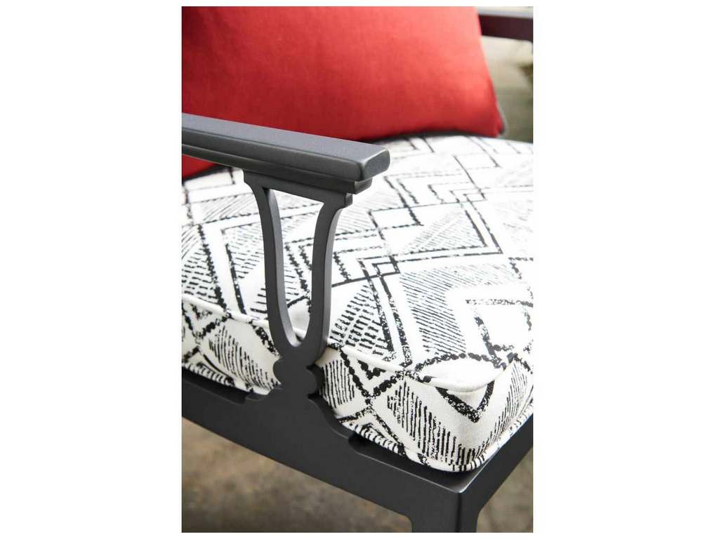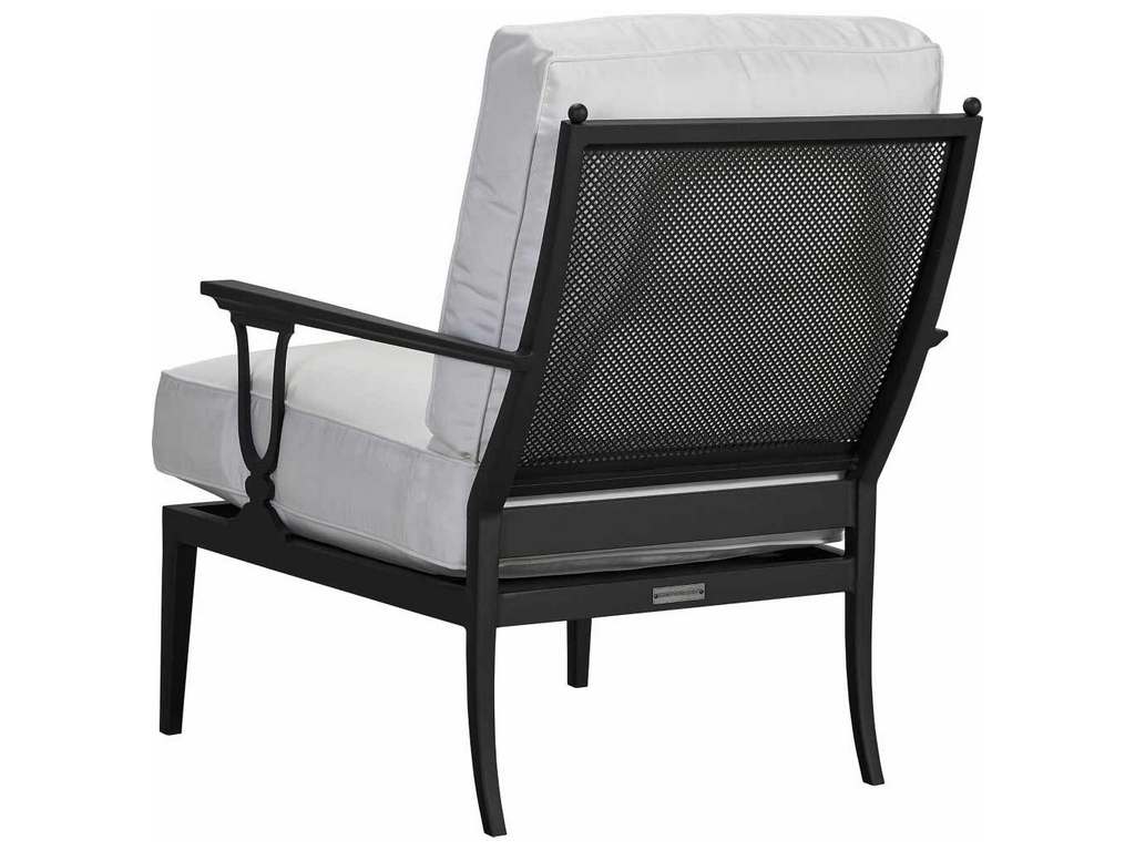 Product Description: Lane Venture 231-01 Winterthur Lounge Chair Mesh Back - Our Winterthur Estate lounge chair with its classic shape and graceful arced back is the perfect cozy garden chair. Constructed of premium aluminum, the back features a mesh back. The sleek arm design features the silhouette of a pedestal urn and a slightly tapered flat arm. Sink into the luxurious comfort of our unique outdoor cushion. FRAME: Premium, weather resistant powder-coated aluminum frame. FEATURES: Back panels have pierced aluminum "Mesh" décor accented with aluminum finials. The arm is cast aluminum with an urn profile design. CUSHIONS: Removable cushions. CUSHION CORE: Fiber coil construction with drainable mesh on bottom. Optional fiber-wrapped foam with all fabric casing available. CUSHION STYLE: Box-border with self-welt. FABRICS: Available in all LANE VENTURE fabrics. FINISH: #694 Obsidian Black, as shown.