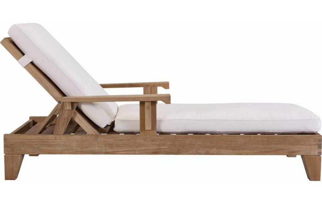 Product Description: Lane Venture 376-40 Saranac Saranac Adjustable Chaise - Our Saranac adjustable chaise embodies a natural and modern aesthetic. Large flat arms and adjustable back emphasize the beauty of the wood's natural grain and give a casual laid-back vibe perfect for hours of relaxing with friends. Clean simple lines, substantial straight "box joint" frame work, typical of solid hand-craftsmanship. Over time, teak will naturally silver giving it a natural and unique patina. Our ultimate outdoor cushion is the key to luxurious comfort. FRAME: Hand-crafted from environmentally friendly FSC-certified teak. FEATURES: Clean simple lines, substantial straight "box joint" frame work, typical of solid hand-craftsmanship. Adjustable chaise back adjusts to five-points of recline, as well as lays flat. CUSHIONS: Removable cushions. CUSHION CORE: Fiber construction with drainable mesh on bottom. Optional fiber-wrapped foam with all fabric casing available. CUSHION STYLE: Box-border, weltless with top-stitch tailoring. FABRICS: Available in all LANE VENTURE stain and mildew-resistant solution dyed fabrics. FINISH: Natural teak as shown. Note: Teak will gain a silvery patina as exposed to the elements.