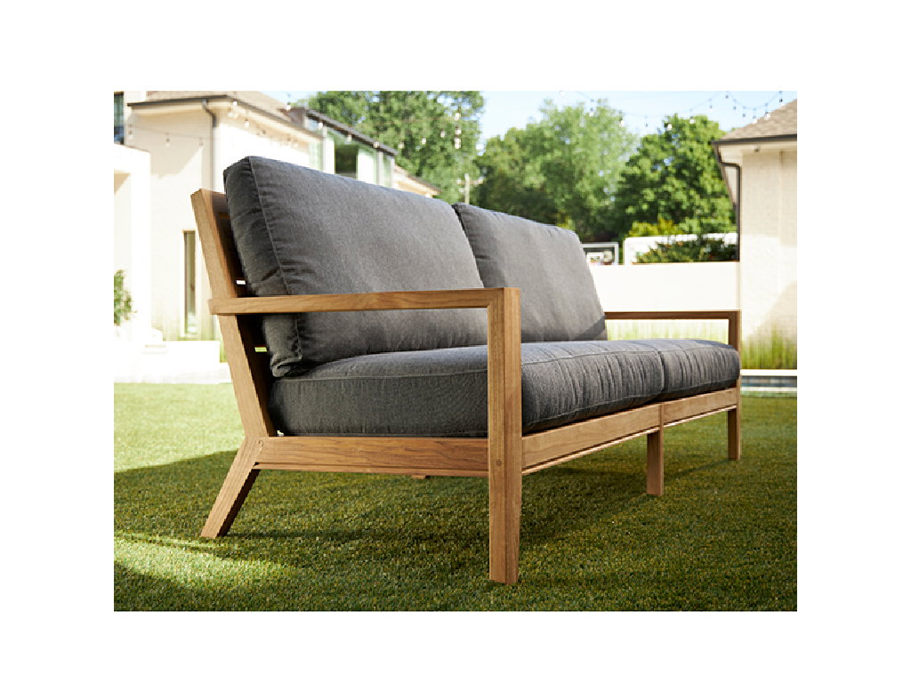 With wide horizontal panels and flat track arms, the beauty and simplicity of mid-century design is captured to create a striking geometric form. The slightly lower seat and relaxed back invite all-day lounging.
