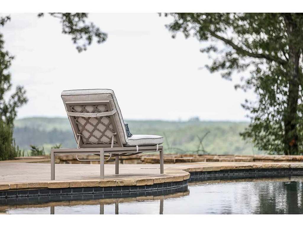 Product Description: Lane Venture 414-40 Willow Adjustable Chaise - Featuring a sophisticated lattice design, our Willow collection offers feminine details crafted in durable aluminum, made in USA. With a unique design, the Willow seating collection will provide years of comfort and beauty to any outdoor room. FRAME: Weather-resistant, premium powder-coated aluminum. CUSHIONS: Removable cushions. CUSHION CORE: Fiber-wrapped foam with all fabric casing. CUSHION STYLE: Box border, weltless with top-stitch tailoring. FEATURES: Matching fabric cushion straps included. Cast aluminum trellis back design. 4 Position reclining back. Lays flat. FABRICS: Available in all LANE VENTURE fabrics. FINISH: Available in all Custom Casual color options.