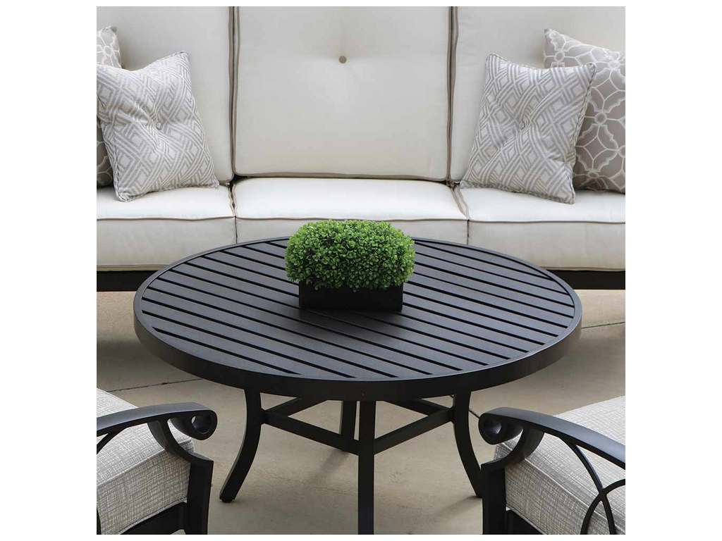 Product Description: Lane Venture 451-63 Craftsman Round Cocktail Table - Our Craftsman tables are available in both round and square shapes and feature slat tops that will coordinate with many seating styles. Available in all Custom Casual finish options. FRAME: Weather-resistant, premium powder-coated aluminum. FEATURES: Aluminum slat top: fully-welded and assembled. FINISH: Available in all Custom Casual color options.