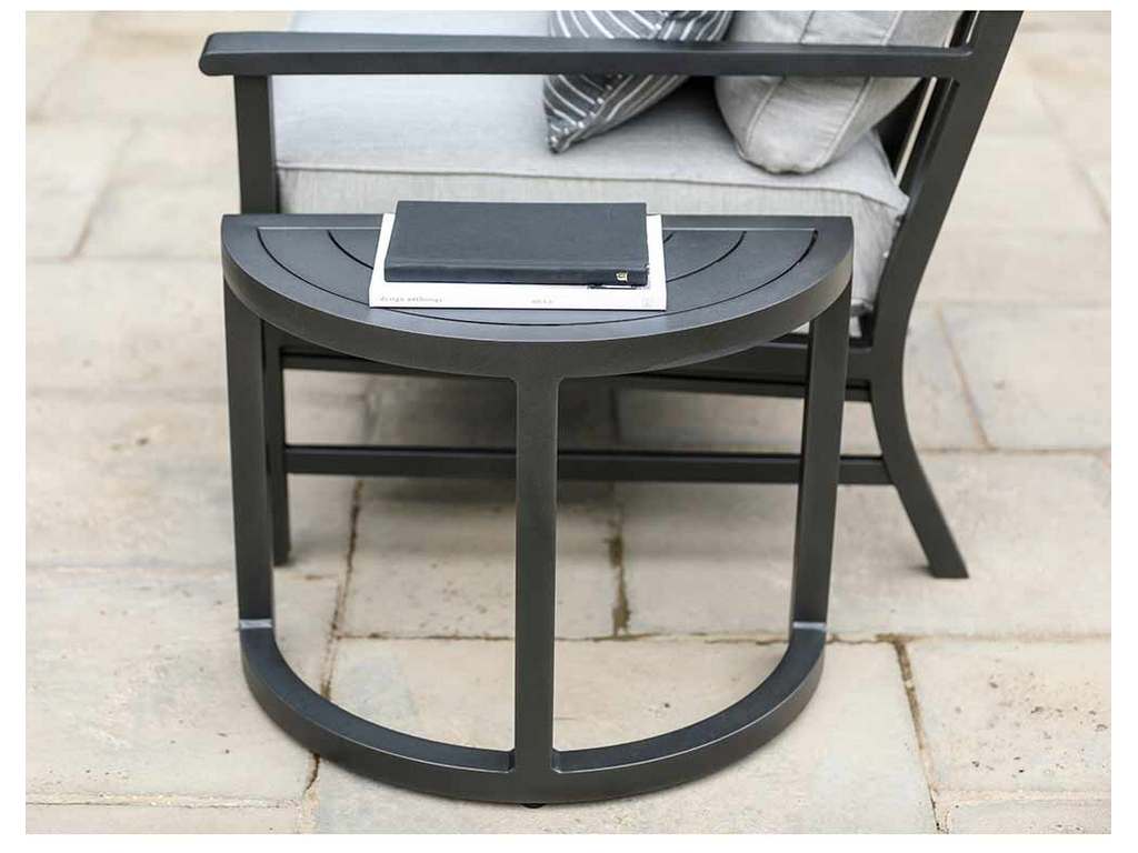 Product Description: Lane Venture 455-12 Contempo Contempo Crescent End Table - You'll love the unique design of our Contempo tables. This table design is 100% made in the USA from premium grade aluminum. FRAME: Weather-resistant, premium powder-coated aluminum. FEATURES: Fully-welded and assembled. 360 degree welds for maximum strength and longevity. Solid billet aluminum top milled in a modern, geometric pattern. FINISH: Available in all Custom Casual color options.