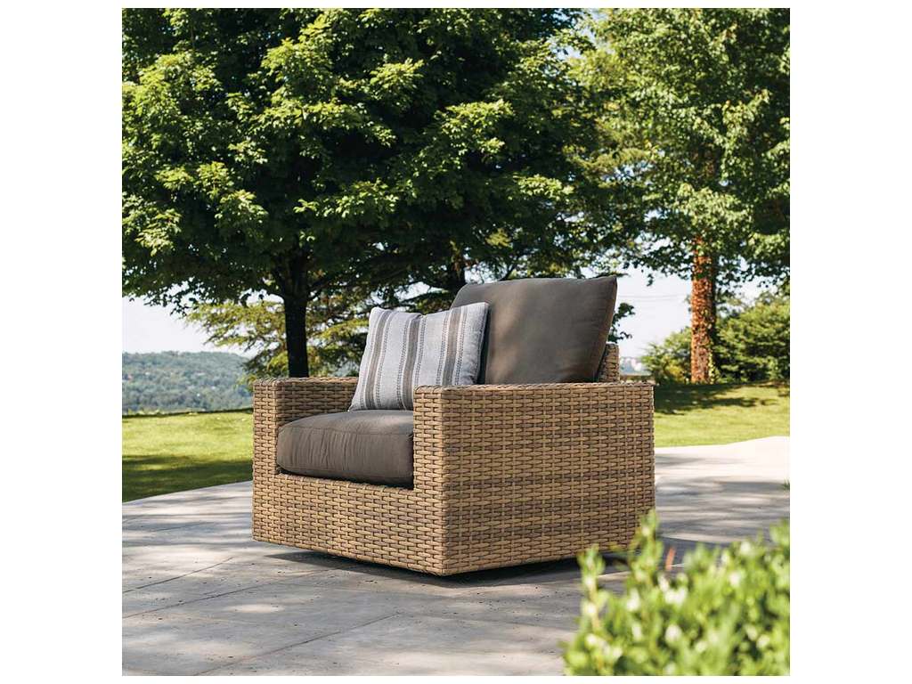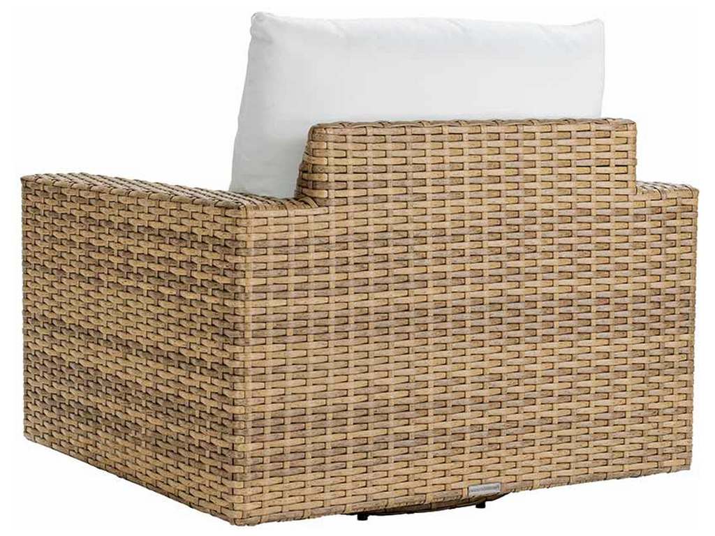 Product Description: Lane Venture 540-75 Campbell Campbell Swivel Lounge Chair - Weather-resistant, high UVpolyethylene synthetic fiber, hand-woven over premium aluminum frame. Double wall construction. Clean lines with deep seating comfort. Swivel Base. Fiber coil construction with drainable mesh on bottom. CUSHION STYLE: Box-border, weltless with top-stitch tailoring.Available in all LANE VENTURE fabrics. Available in finish 650 Barley or 175 Quarry Grey.
