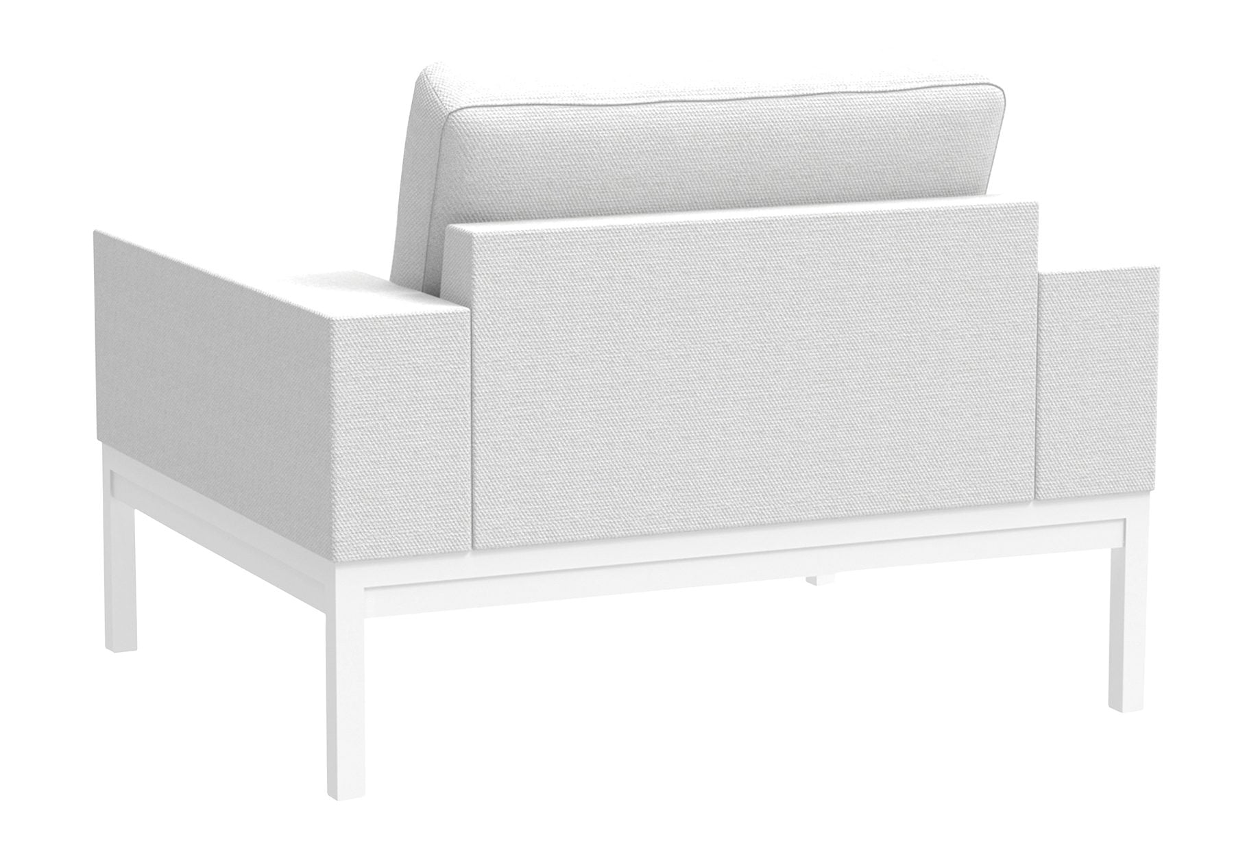 Whether you’re creating a bespoke residential terrace or a commercial hospitality setting, this collection brings a fresh design language to luxury outdoor living. Crafted with a sleek, powder-coated aluminum plinth base, the Bespoke Modular collection achieves a floating, architectural appearance. The low-profile arms and structured frame contribute to a refined aesthetic, while the open leg design maintains visual lightness, making it ideal for both indoor and covered outdoor settings.