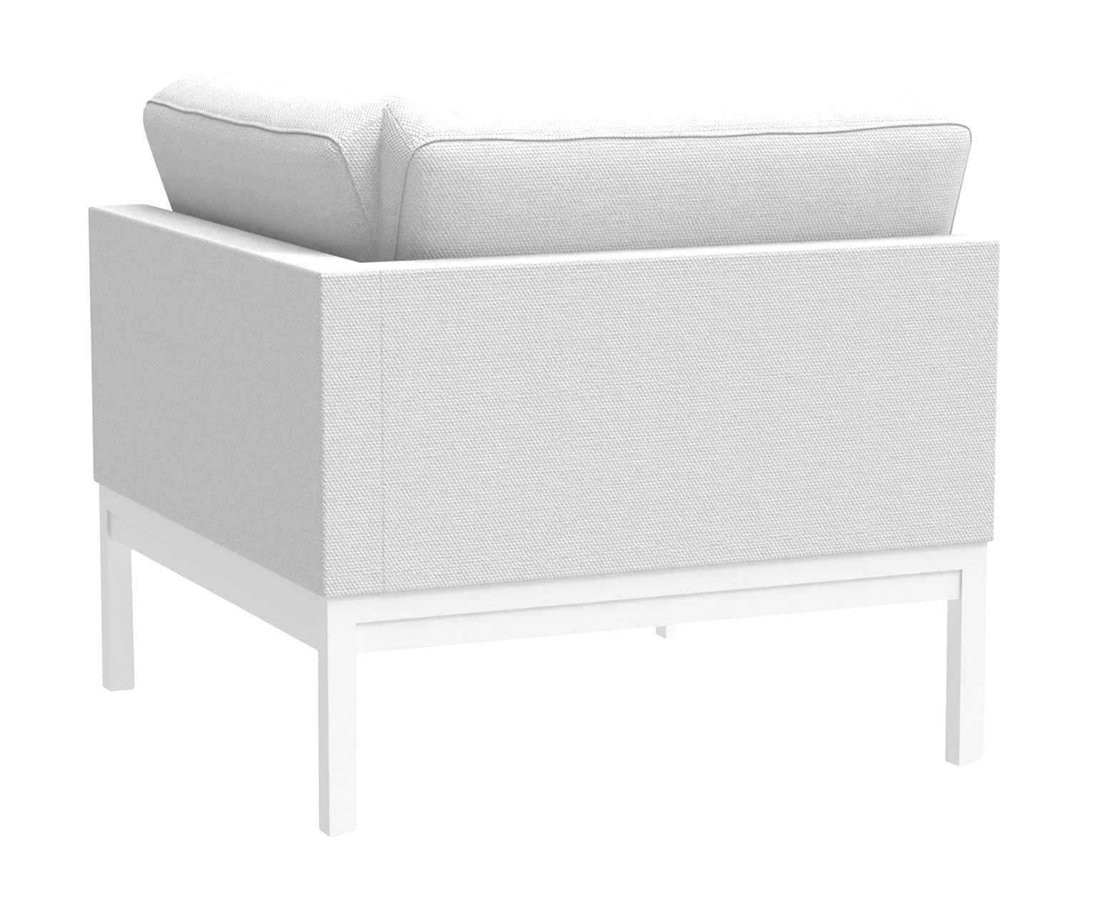 Product Description: Lane Venture 600-15 Bespoke Modular Corner Chair - Crafted with a sleek, powder-coated aluminum plinth base, the Bespoke Modular collection achieves a floating, architectural appearance. The low-profile arms and structured frame contribute to a refined aesthetic, while the open leg design maintains visual lightness, making it ideal for both indoor and covered outdoor settings.