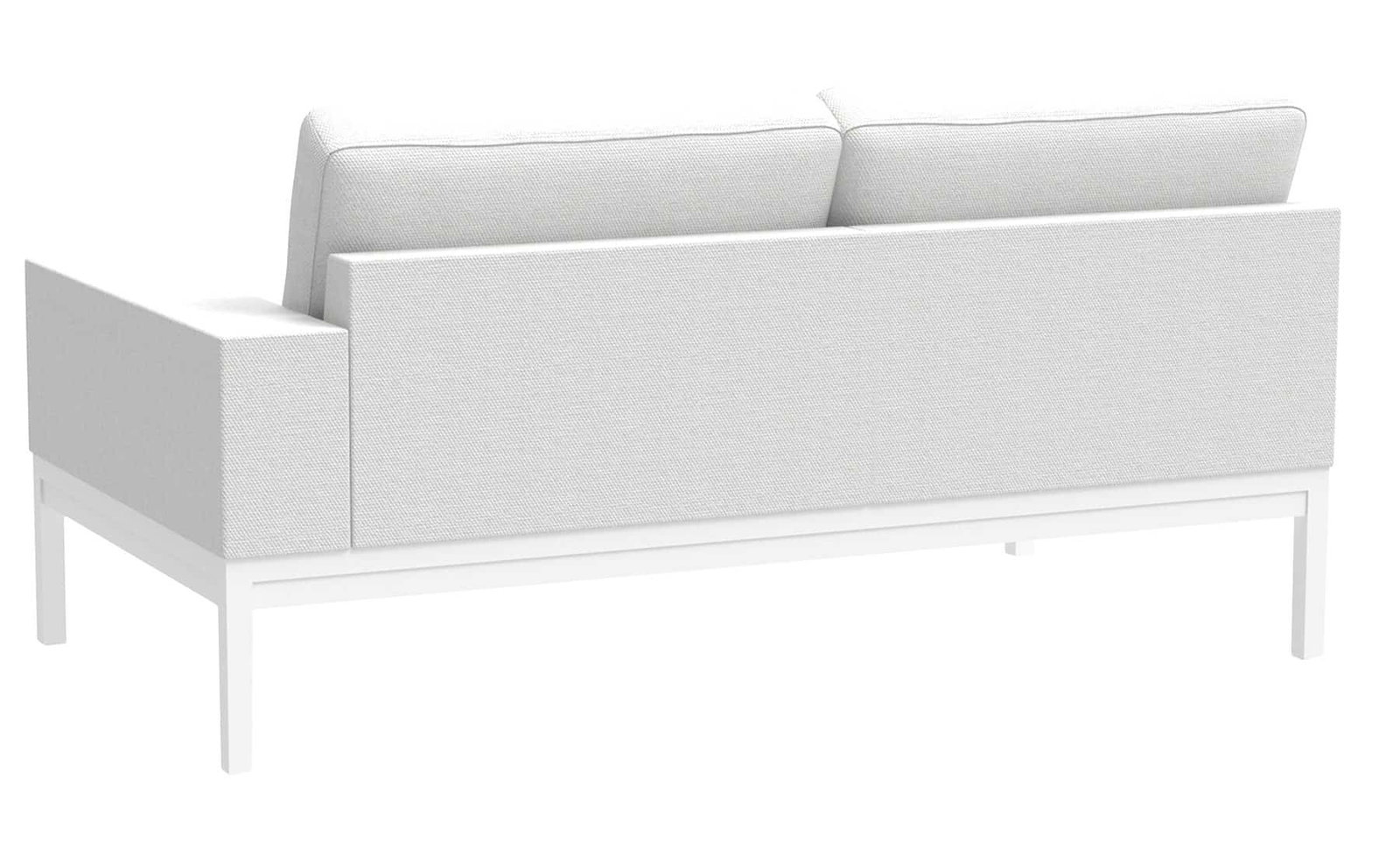 Product Description: Lane Venture 600-22 Bespoke Modular RF One Arm Loveseat - Crafted with a sleek, powder-coated aluminum plinth base, the Bespoke Modular collection achieves a floating, architectural appearance. The low-profile arms and structured frame contribute to a refined aesthetic, while the open leg design maintains visual lightness, making it ideal for both indoor and covered outdoor settings.