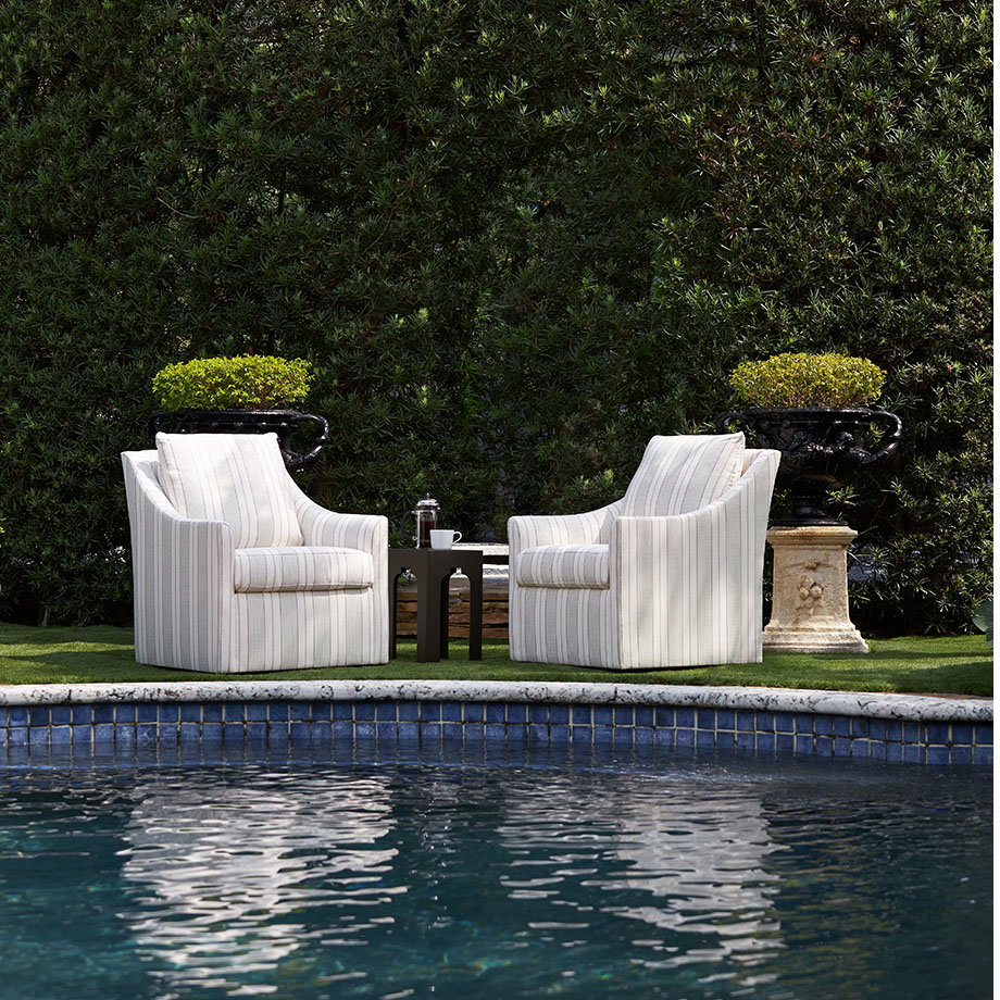 Product Description: Lane Venture 884-87 Fielding Swivel Lounge Chair - The versatile and stylish Fielding swivel chair features a transitional style with a fully upholstered frame, flared arms, and a swivel motion base. It is designed for both indoor and outdoor use, offering the perfect balance of comfort and functionality