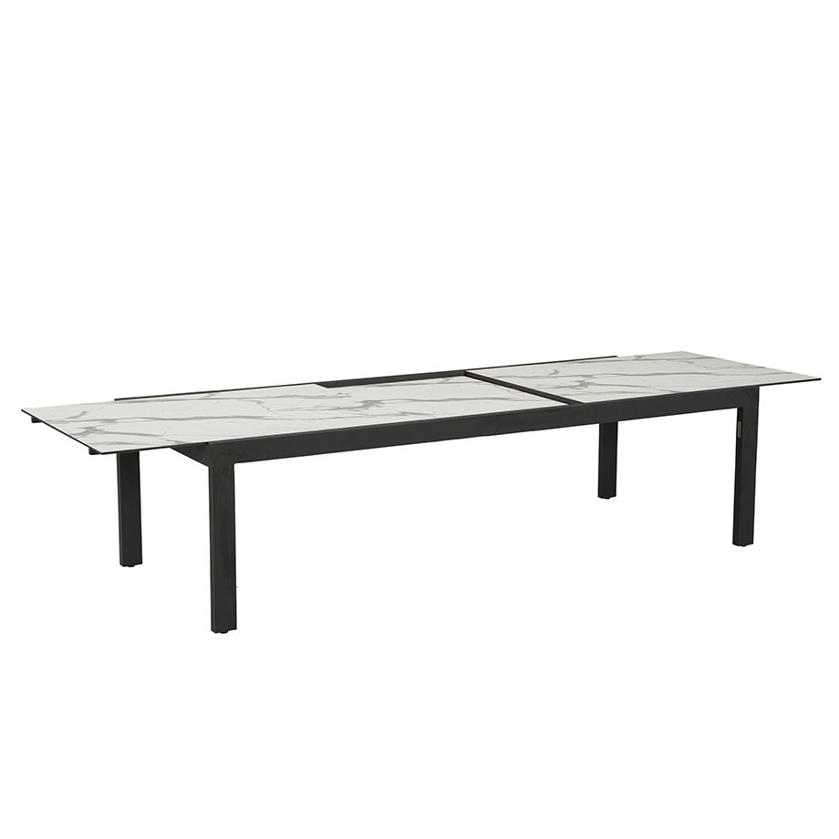 Product Description: Lane Venture 9211-98W Palisades Extension Dining Table - Top high pressure laminate faux stone. Base is weather-resistant premium powder-coated aluminum. Easy to use extension table mechanism with hidden self-storing leaf for extra seating .
