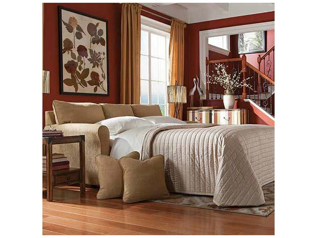 Product Description: Lazboy 510418 Leah Queen Sleep Sofa - Turn any room into a stylish and functional guest room with the Leah Queen Sleep Sofa. Its sleek profile is perfect for smaller spaces, yet it opens up to become a super comfortable Queen bed, complete with a Supreme ComfortTM quilted innerspring mattress measuring 5.5" thick. By day, this sleeper is a true beauty too, with curving rolled arms, welt trim and patented ComfortCore® cushions that provide optimum support for a long or short sit. Includes two 18" accent pillows.
