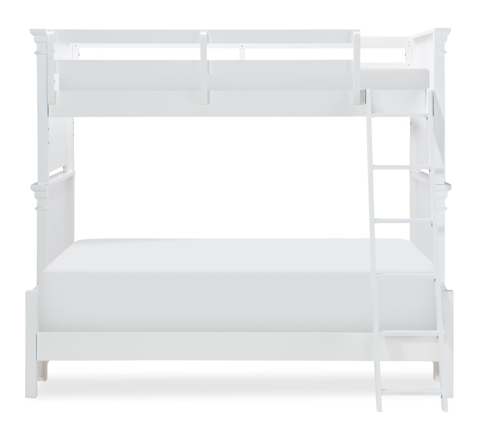 Product Description: Legacy Classic Kids 3815-8140K Canterbury Twin Over Full Bunk Bed - Twin over full bunk bed in white finish for versatile use. Features a secure ladder for safe access to the top bunk. Provides a space-saving solution for shared bedrooms. Accommodates twin and full-size mattresses.