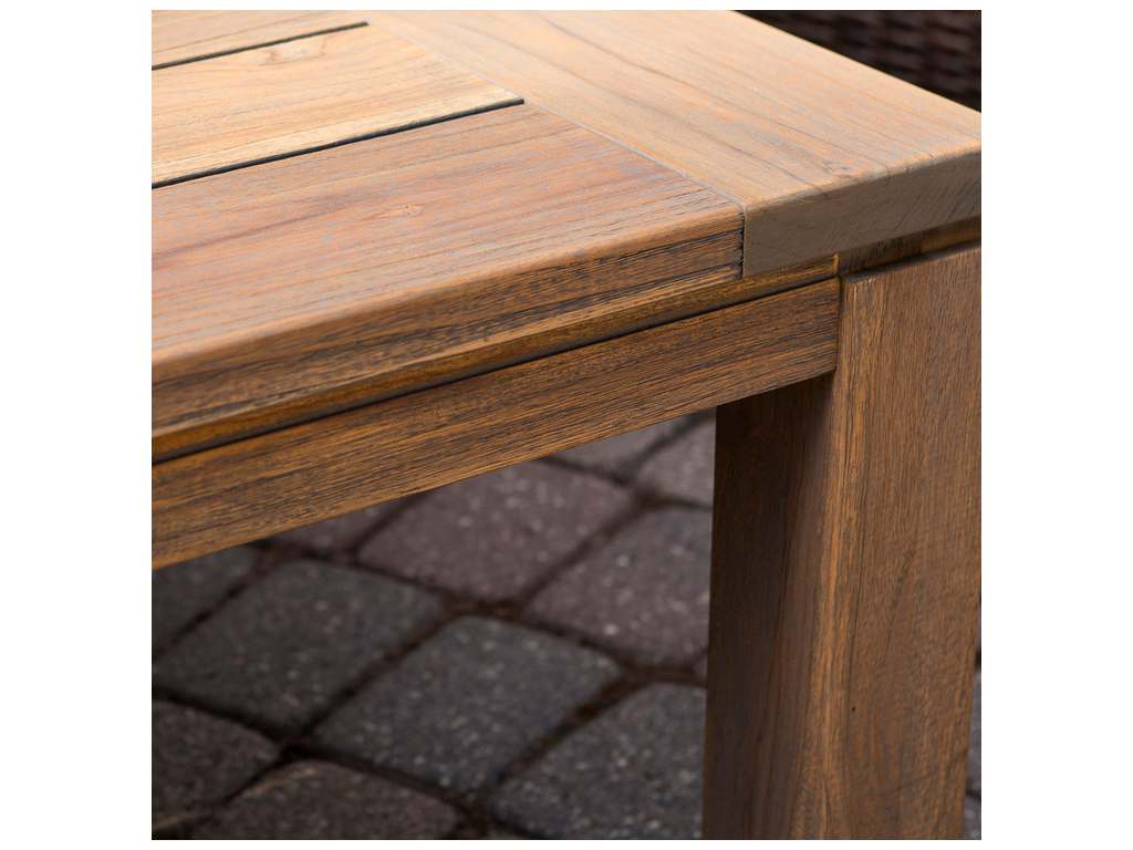 Our premium teak wood is ideal for outdoor furniture because of its high oil content, inherent strength, and tight grain. In the elements, teak will age over time and can mature to a beautiful, silvery finish. We only use sustainably harvested FSC-certified teak in our products.